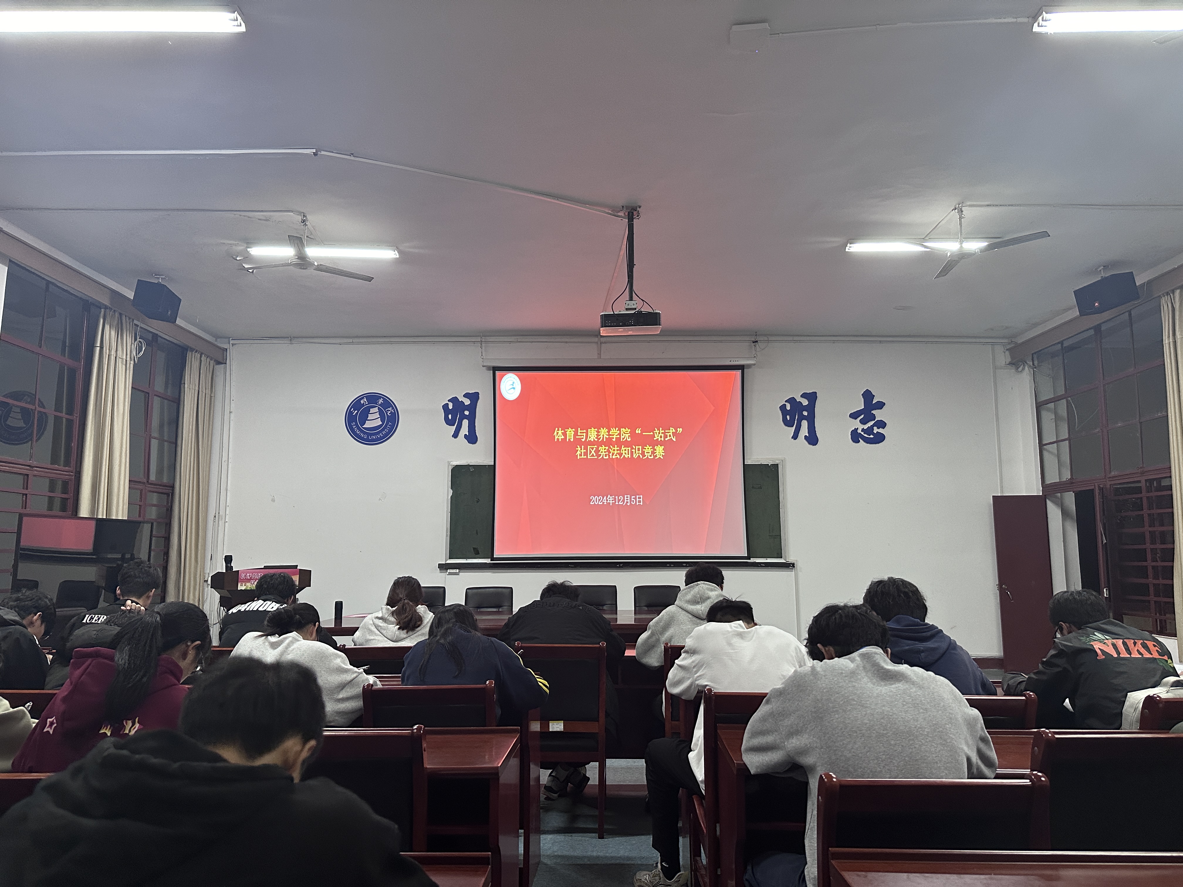 12月5日,体育与康养学院开展“一站式”社区宪法知识竞赛,通过竞赛,以赛促学、趣味普法,使同学们在宪法答题过程中潜移默化坚定政治信仰,丰富宪法知识,更深刻体会宪法精神的时代价值。