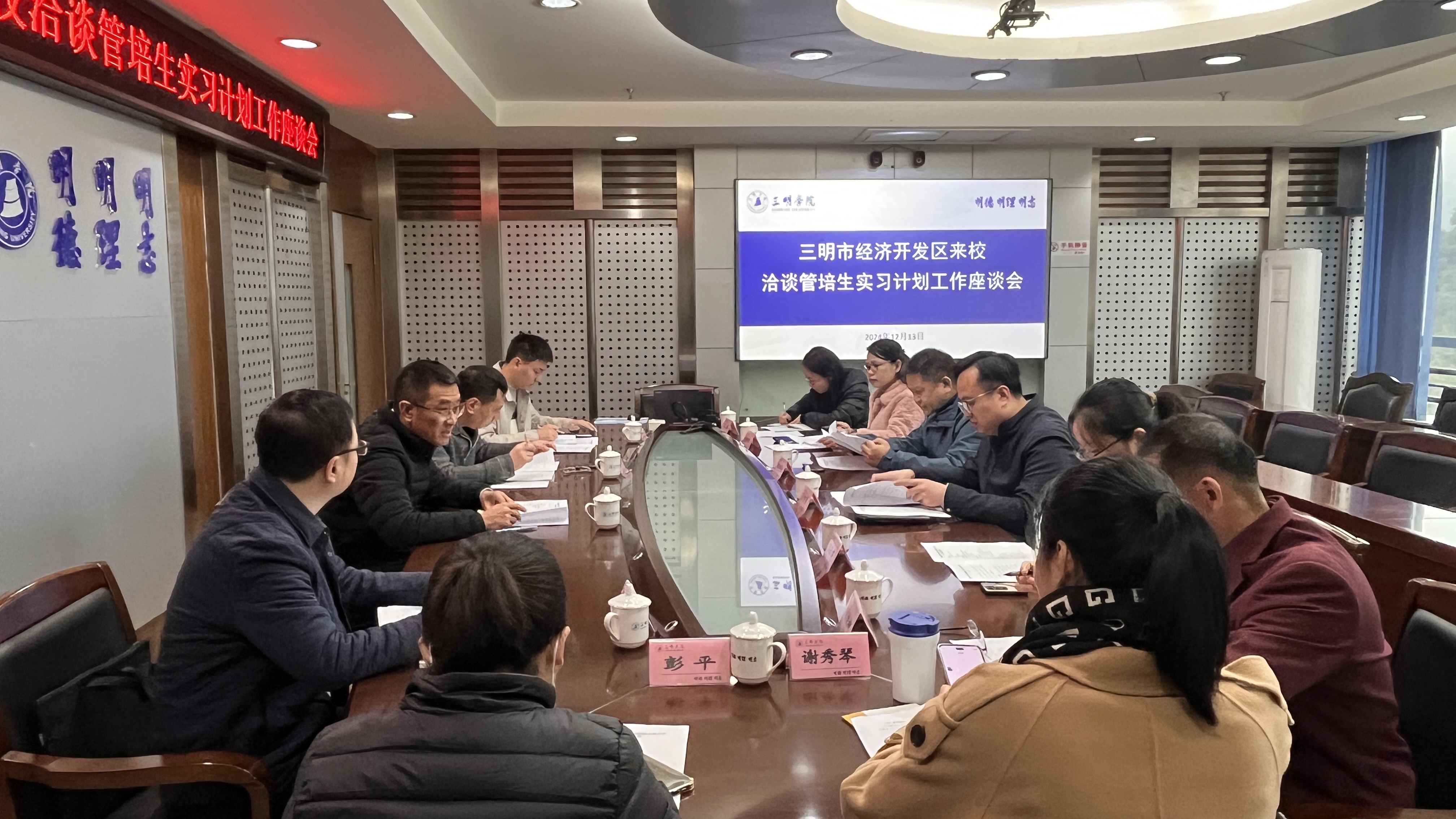 12月13日上午,三明市经济开发区管委会副主任陈华森一行到校洽谈交流管培生实习工作。