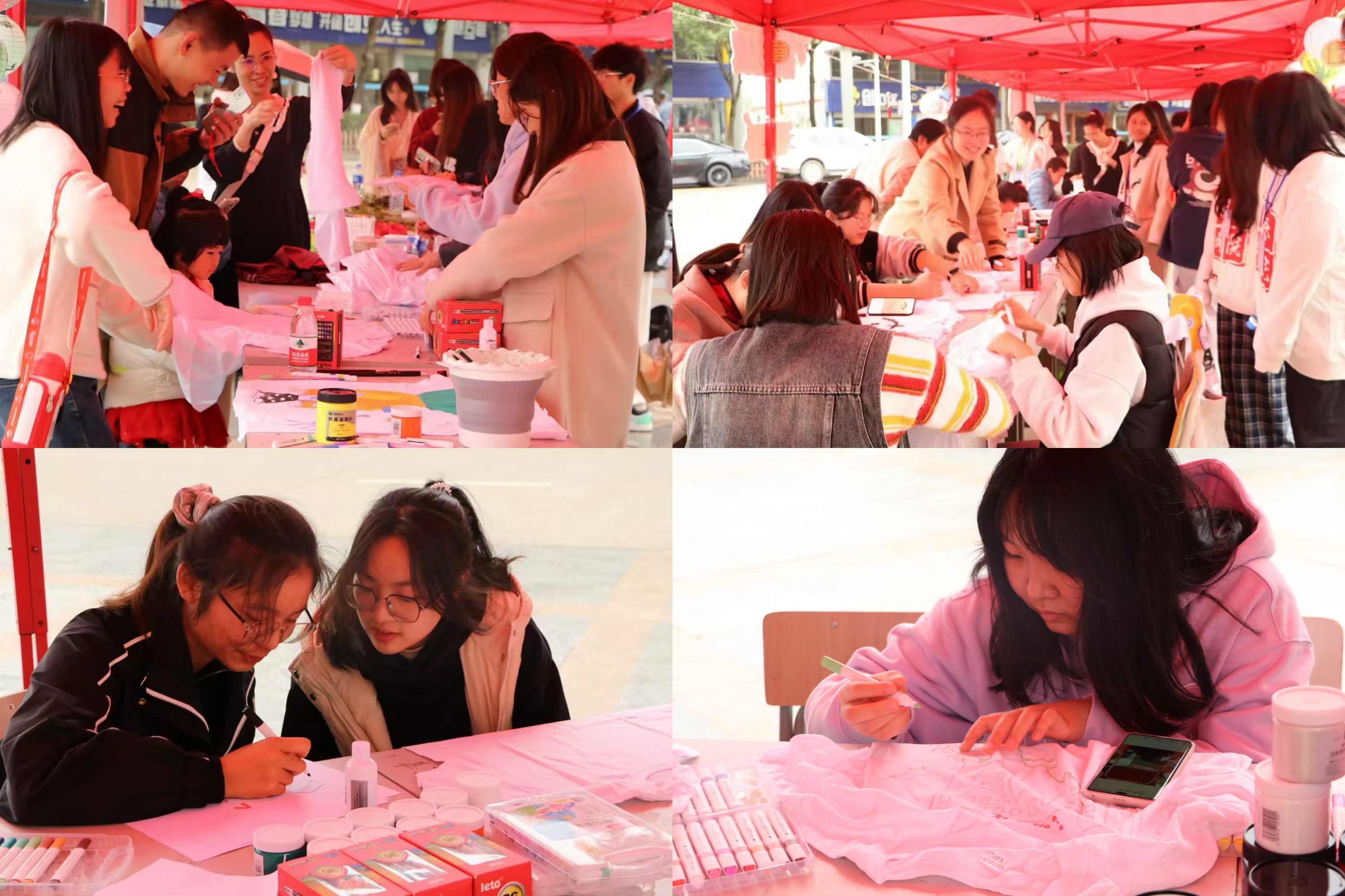 校友们纷纷化身创意大师,精心挑选颜料、勾勒线条、涂抹色彩,将自己对校园生活的难忘瞬间和对母校深深的热爱,通过画笔在洁白的T恤衫上一一呈现。创作过程中,校友们开怀畅谈,回忆曾经的校园趣事,分享毕业后的经历成长,在感受艺术魅力的同时,也重温了昔日的同窗情谊。