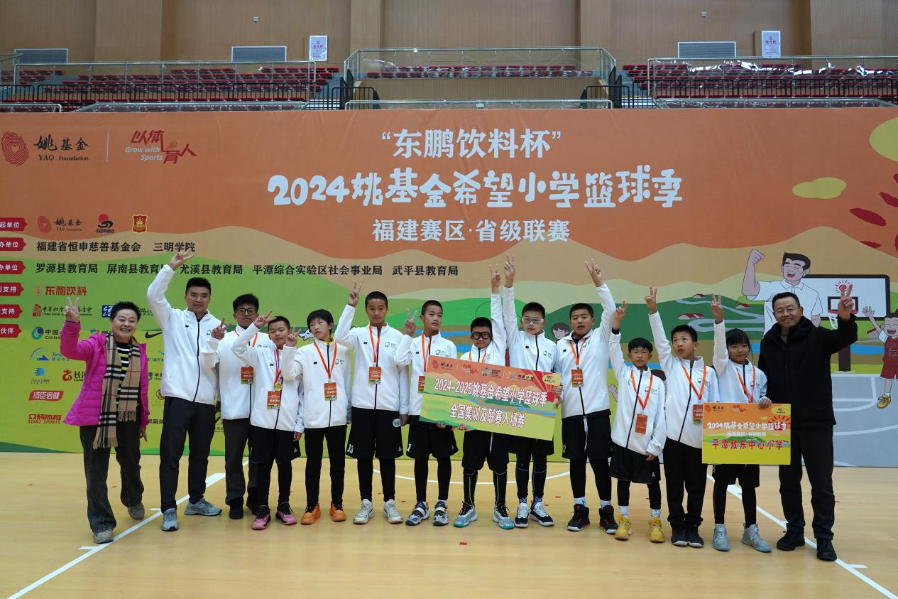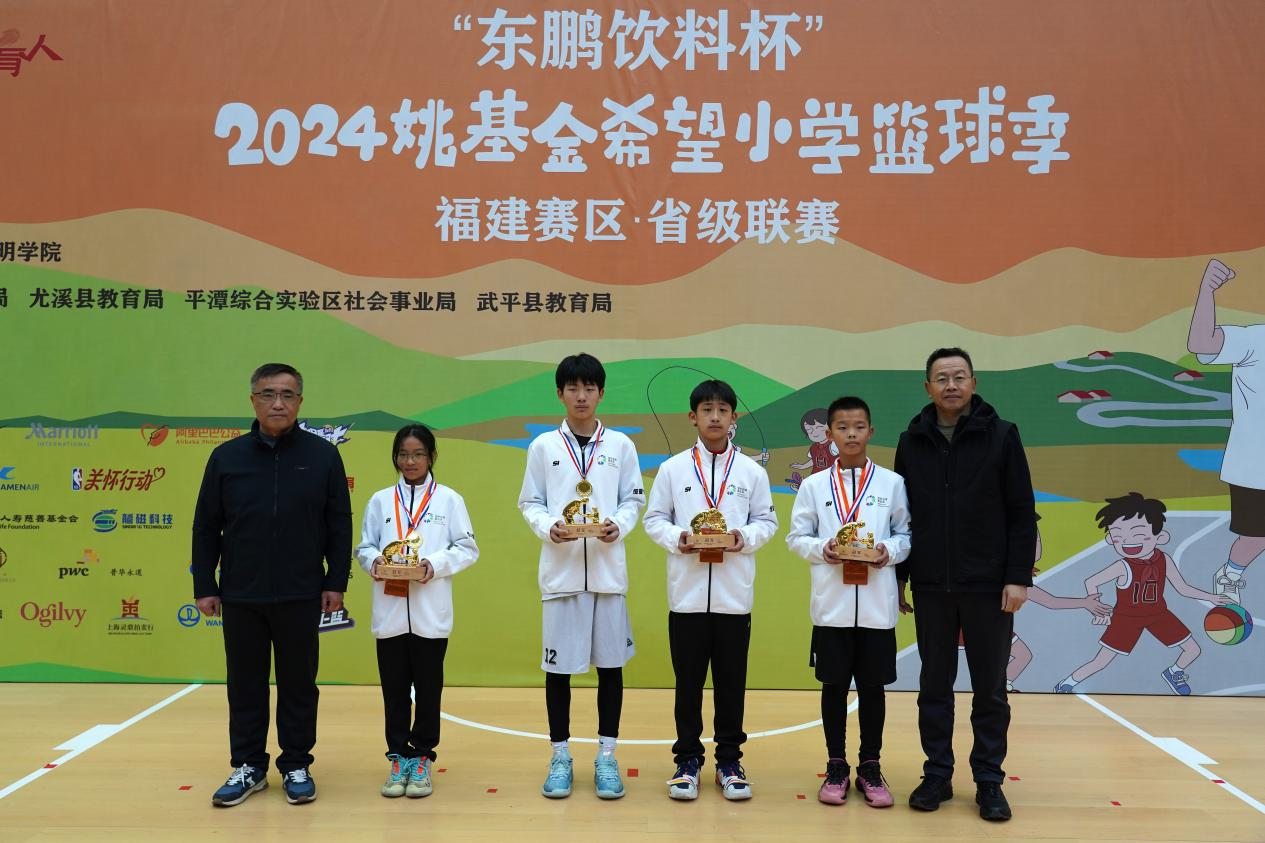 赛场上,小球员们彼此配合,相互鼓励,共同为胜利拼搏,每一个跳跃、每一次投篮,都是孩子们对梦想的追逐和坚持,这正是姚基金“以体育人”公益理念的生动体现。经过精彩角逐,最终平潭敖东中心小学、屏南县国宝中心小学、武平刘亚楼红军小学、武平十方中心学校4所学校获得冠军,平潭敖东中心小学获得“2024-2025姚基金希望小学篮球季全国集训及联赛入场券”。