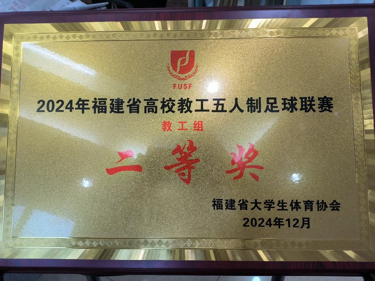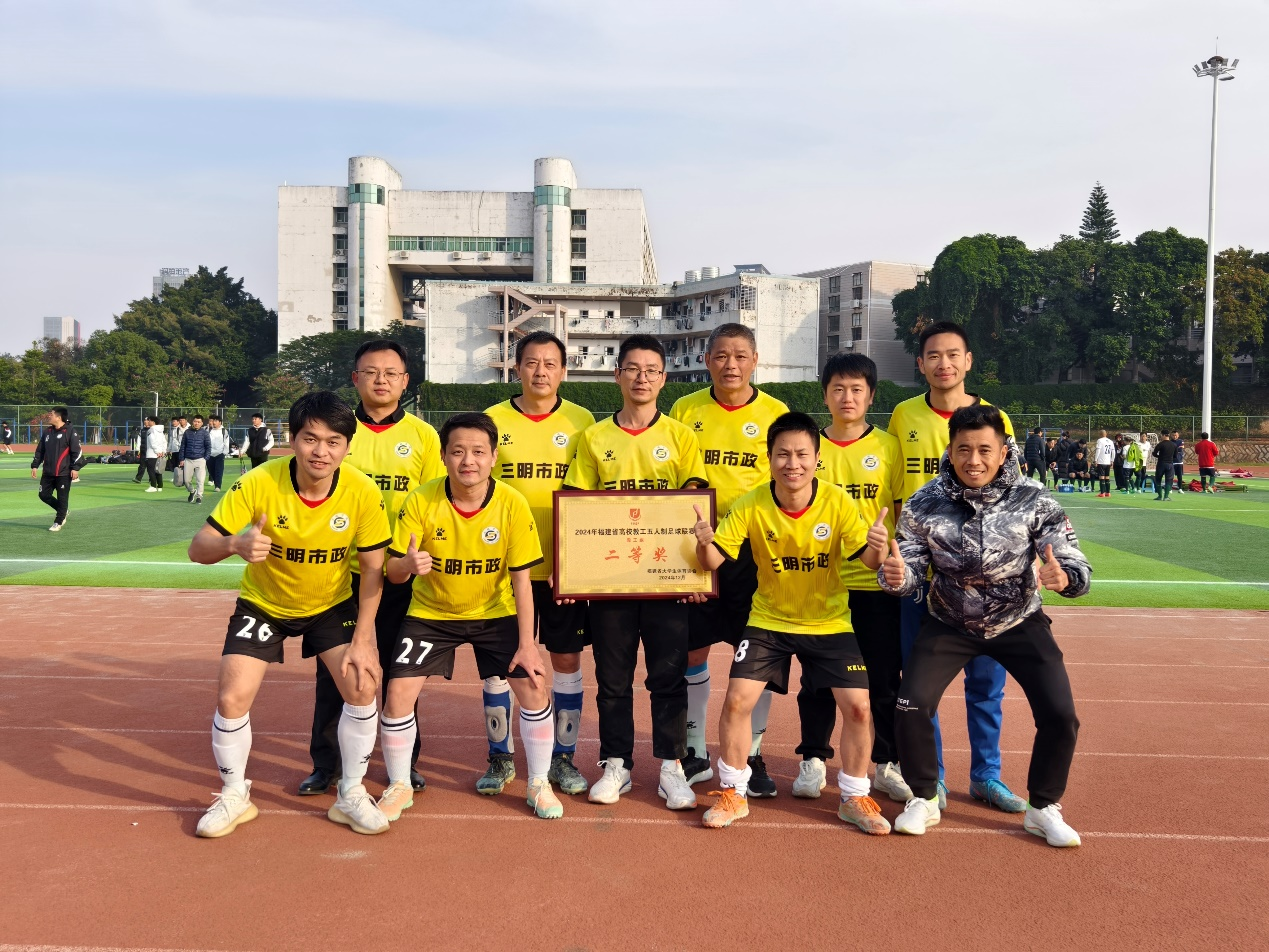 12月21至22日,2024年福建省高校教工五人制足球联赛在华侨大学泉州校区举行。经过多轮激烈角逐,yl6809永利官网教工足球队凭借出色的团队协作和顽强的拼搏精神,在众多参赛队伍中脱颖而出,获得本次赛事的二等奖和体育道德风尚奖。