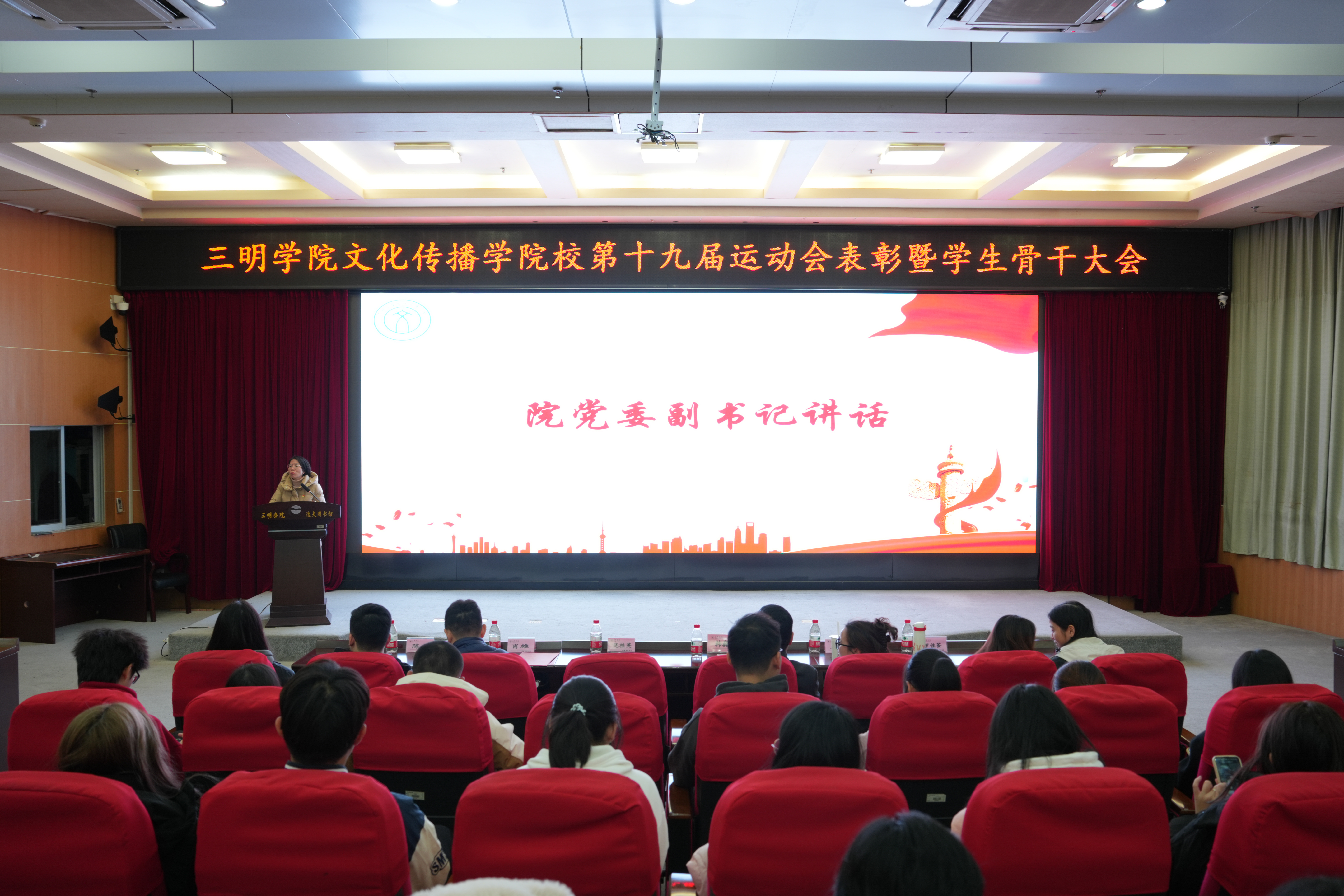 12 月 18 日,为更好地指导学生骨干发挥主体意识,做好学生骨干队伍建设工作,充分展现学生骨干的榜样力量及引领效能,进一步提高学生集体的向心力和自主管理能力,文化传播学院在图书馆学术报告厅举行学生骨干大会。