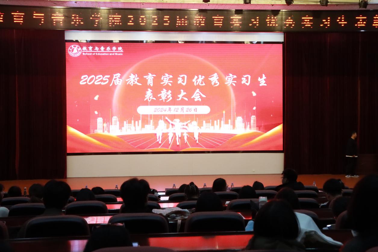 12月26日下午,教育与音乐学院2025届教育实习优秀实习生表彰大会在行政附楼学术报告厅隆重举行。教育与音乐学院院长艾述华教授、院务委员林荣珍副教授、各科室负责人、全体辅导员以及2025届全体学生参加了大会。