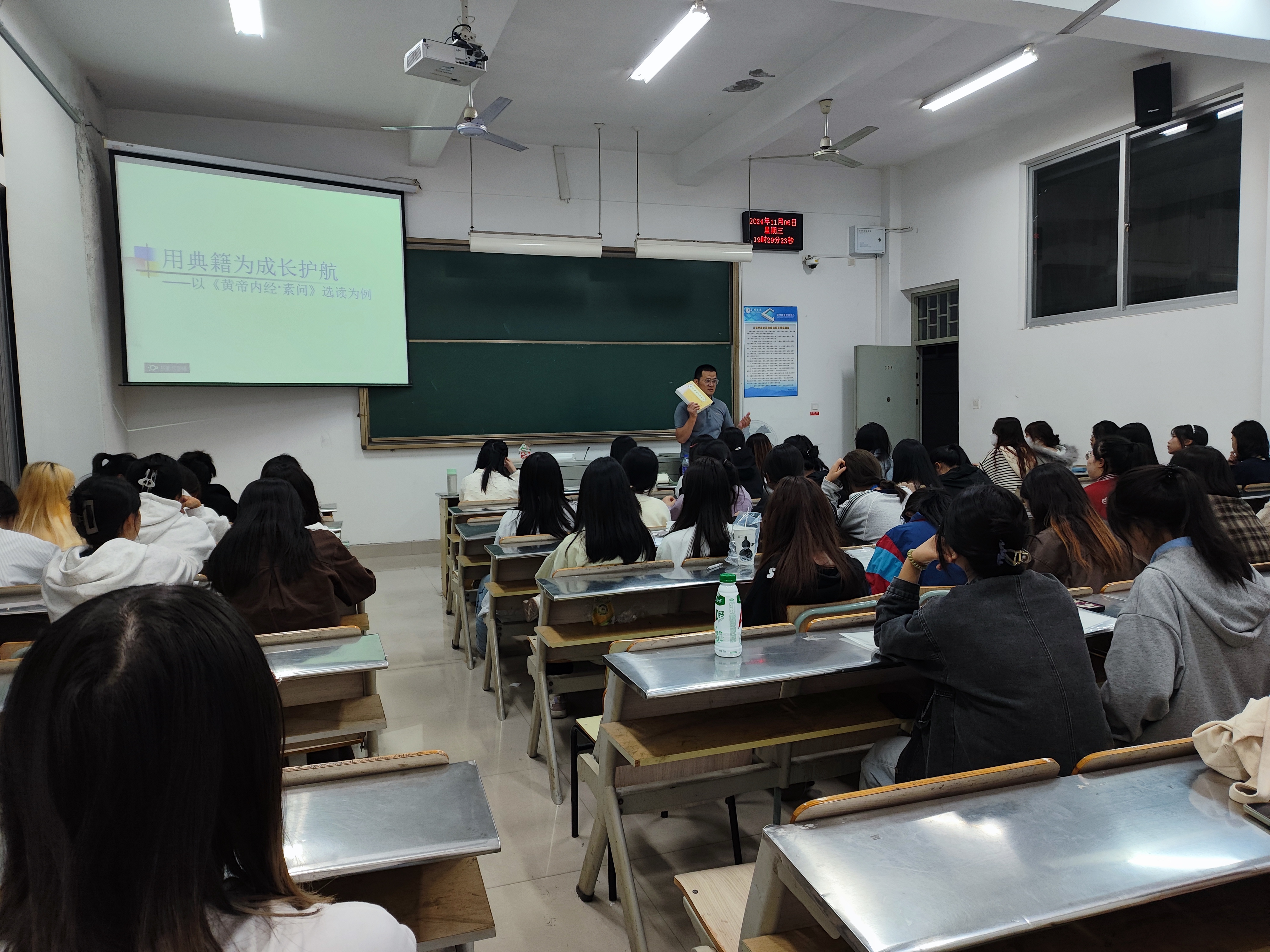 “天有四时五行,以长生收藏,以生寒暑燥湿风。人有五藏,化五气,以生喜怒悲忧恐。”2024年11月6日晚,由图书馆和经济管理学院联合举办的“用典籍为成长护航”讲座在厚德楼306如火如荼地开展。