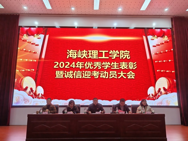 为表彰先进,树立典型,全面提升学风建设水平,海峡理工学院于12月12日在行政楼附楼学术报告厅举办2024年度优秀学生表彰暨诚信迎考大会,院党委书记、副书记、教学科研科、全体辅导员、2024级全体学生及其他年级各班班长、团支书出席活动。