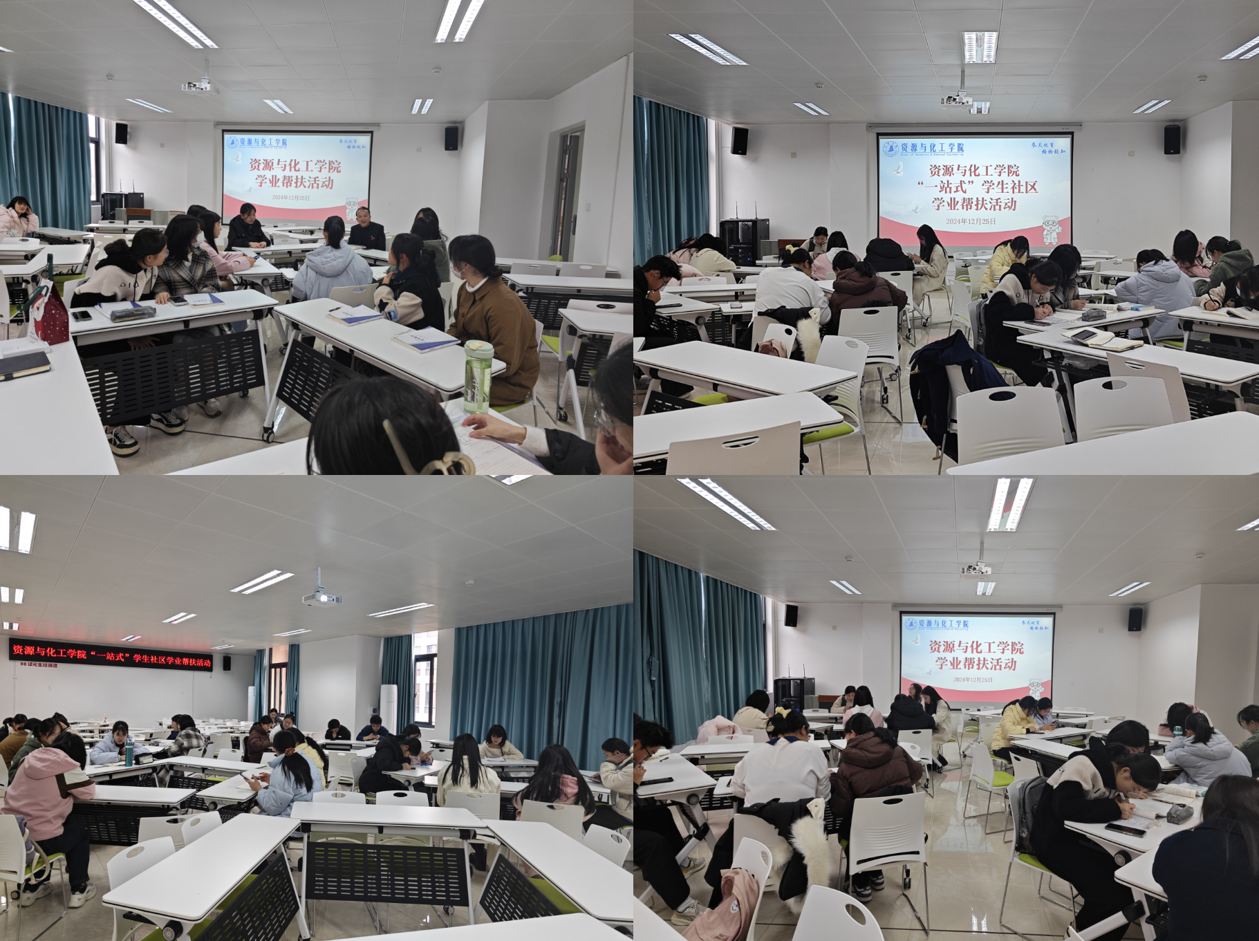 为确保学校“三抓三强”学科建设工作有效有力地推进,落实以学生为中心的教育理念,进一步加强学风建设和精准帮扶,12月25日,由紫荆园7号楼栋党支部,荷花苑1号楼栋党支部、资源与化工学院团委牵头举办的“一站式”学生社区学业帮扶活动在工科楼A403会议室开展。