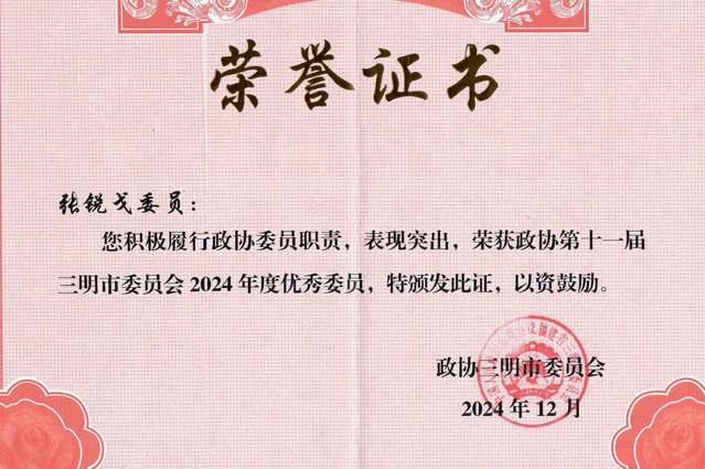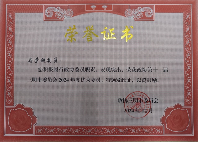 刚刚结束的三明市政协十一届四次会议传来喜讯,我校市政协常委、农工党yl6809永利官网支部主委张锐戈,市政协常委、民建yl6809永利官网支部副主委马荣超被评为2024年度履职优秀市政协委员。