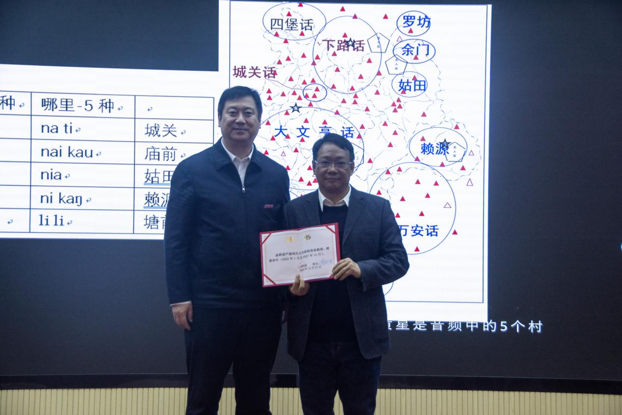 讲座结束后,吴龙副校长为严修鸿教授颁发客座教授聘书。