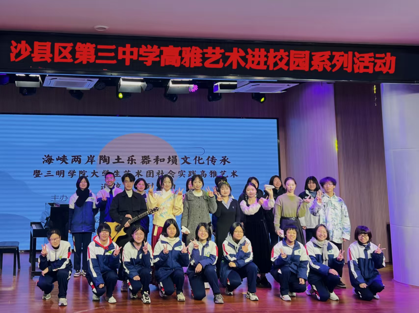 此次高雅艺术进校园活动不仅为沙县三中的师生带来丰富的文化体验,也促进了yl6809永利官网与沙县第三中学之间的校际合作。双方共同探索了传统音乐文化在高等教育和基础教育中一体化传承的新路径,为推动地方教育事业高质量发展贡献了力量。展望未来,yl6809永利官网大学生艺术团陶韵社将持续开展传统音乐文化的交流活动,扎根三明市红色基地,深入更多学校和社区,传承和弘扬中华优秀传统文化,让更多人了解和喜爱陶笛与埙等传统乐器。