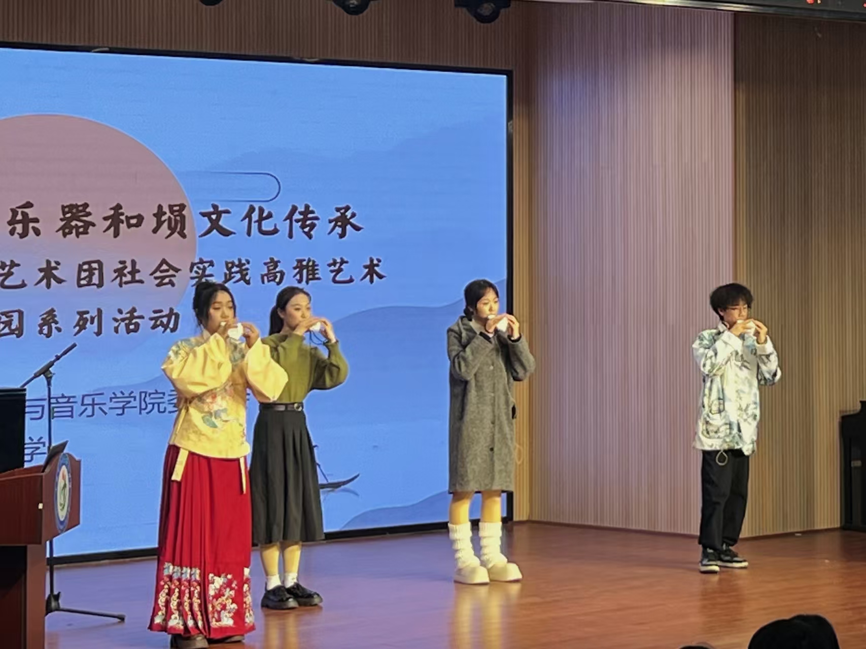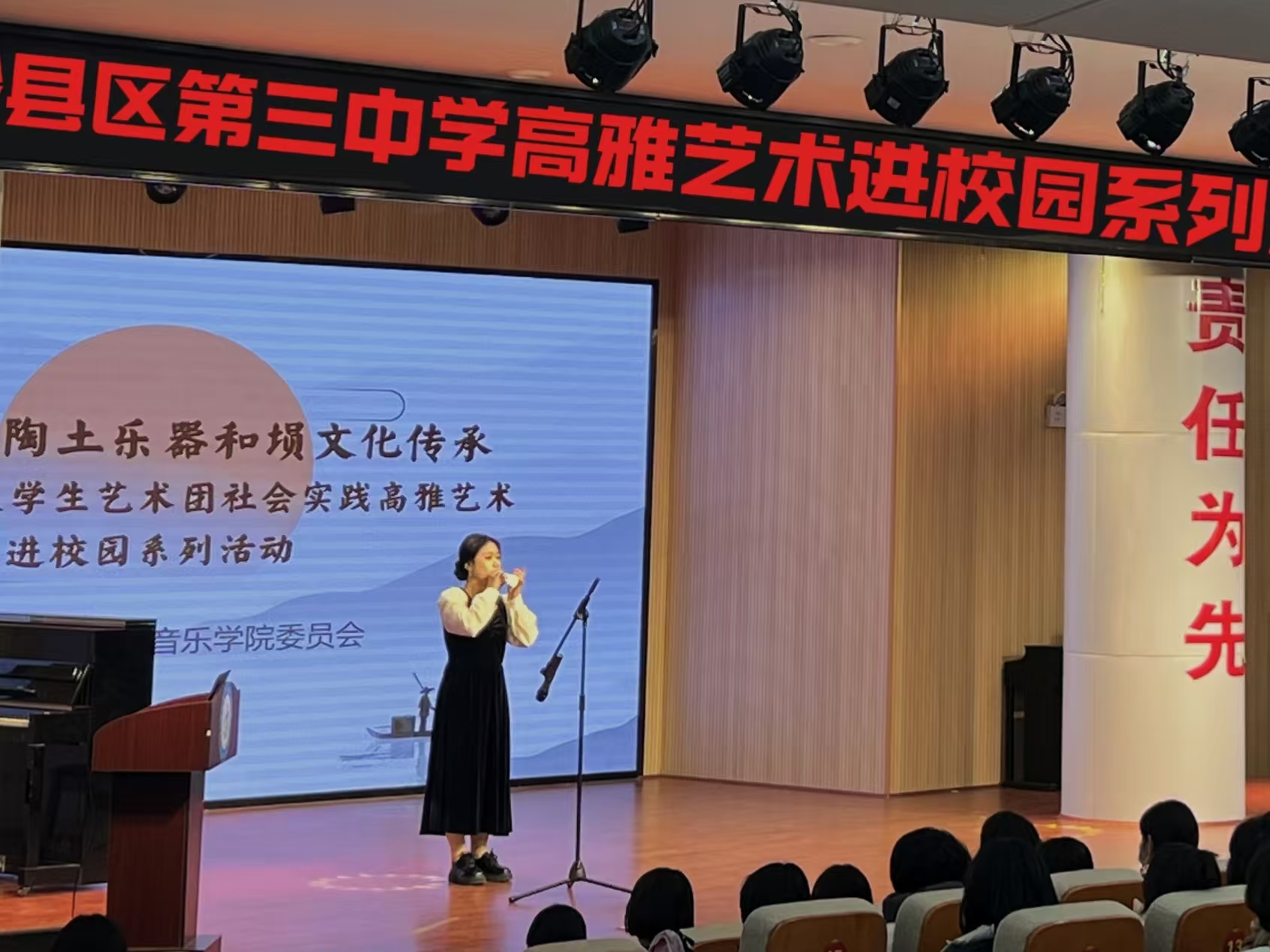 yl6809永利官网大学生艺术团陶韵社致力于陶埙陶笛等传统乐器的传承与推广。在活动中,通过讲座、表演和现场互动,沙县区第三中学的师生们得以近距离感受陶笛与埙的独特魅力,增加了对埙文化的了解,提升了对中华传统音乐文化的热爱。
