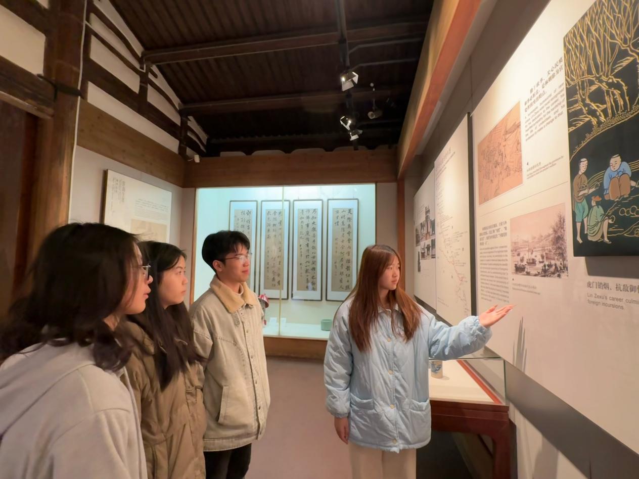作为中国都市仅存的“里坊制度活化石”,三坊七巷承载着数百年的历史记忆,坊巷纵横,每一砖一瓦、一梁一柱,都诉说着独特的故事。实践队一行先后参观了林则徐纪念馆,从林则徐年少求学时的勤奋刻苦,到他为官期间的清正廉洁、务实为民,再到虎门销烟这一震惊中外的壮举,每一段历史都深深震撼着参观者的心灵。“苟利国家生死以,岂因祸福避趋之”这一句话,正是他一生真实的写照。走进严复故居,感悟其“吾辈一身无足惜,如吾子孙与四百兆之人种何”的家国情怀。