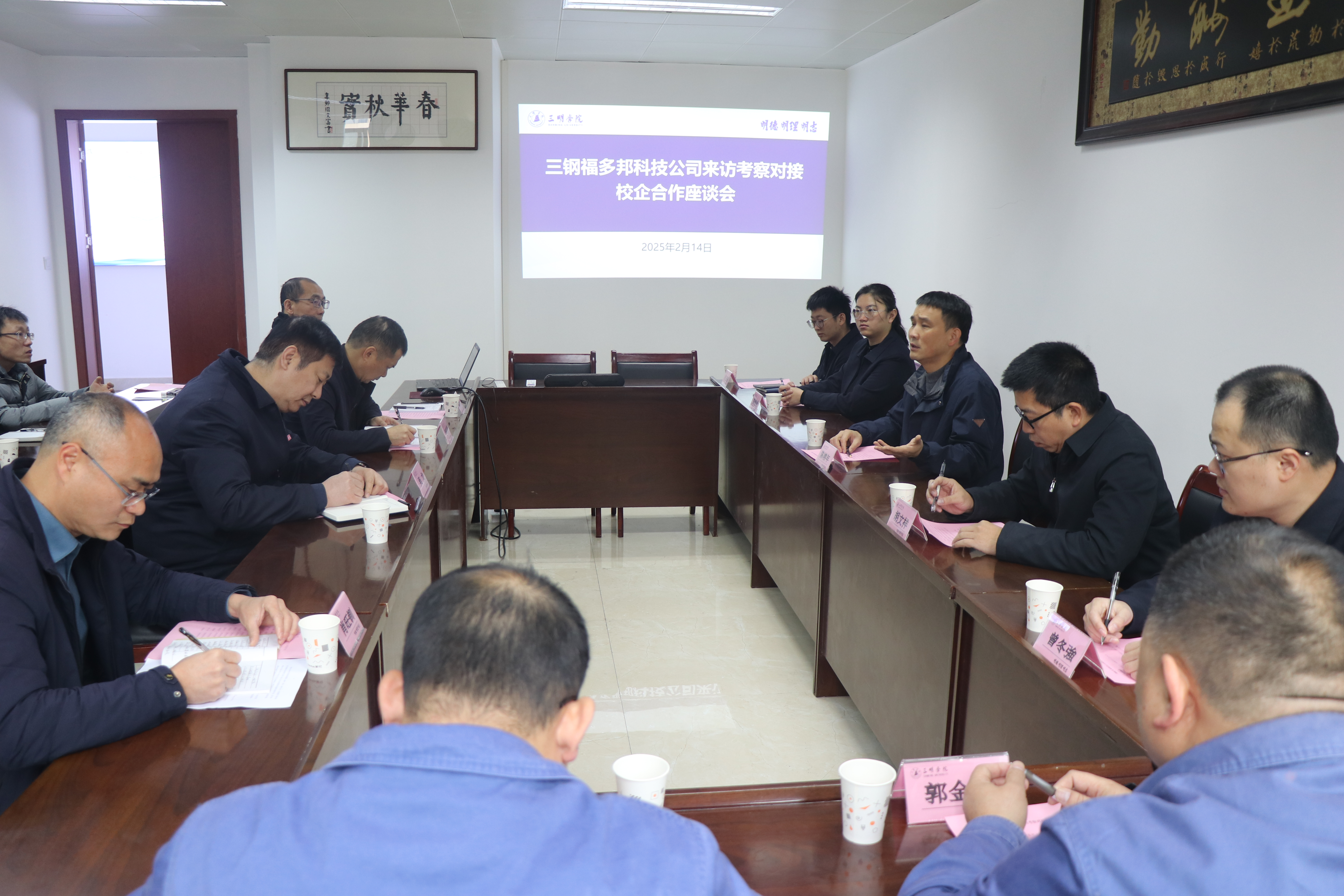 2月14日,三钢集团纪委书记陈榕年、三钢福多邦科技公司董事长及总经理胡文祥率队到yl6809永利官网,针对校企合作事宜进行深入考察与交流,校长张君诚、副校长吴龙热情接待了陈榕年一行。