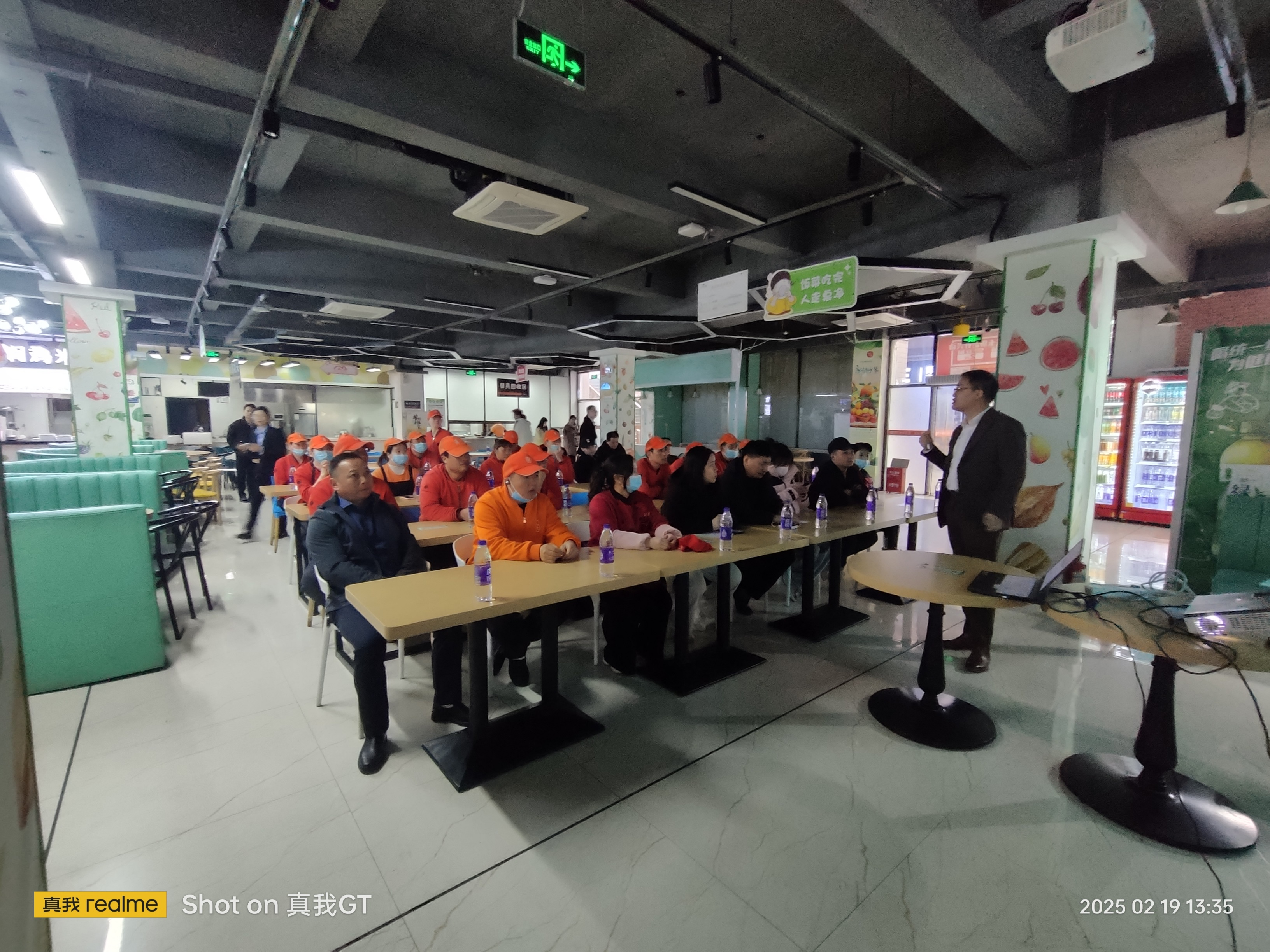 为进一步加强我校食堂及餐饮服务网点食品安全管理,提升工作人员的食品安全意识和消防安全意识,确保广大师生的饮食安全与健康,2025年2月19日下午,我校在南区京元食堂成功举行了一场岗前食品卫生安全及消防安全培训活动。各餐饮服务网点的负责人、现场管理人员、京元食堂工作人员及膳食科管理人员参加了本次培训活动。