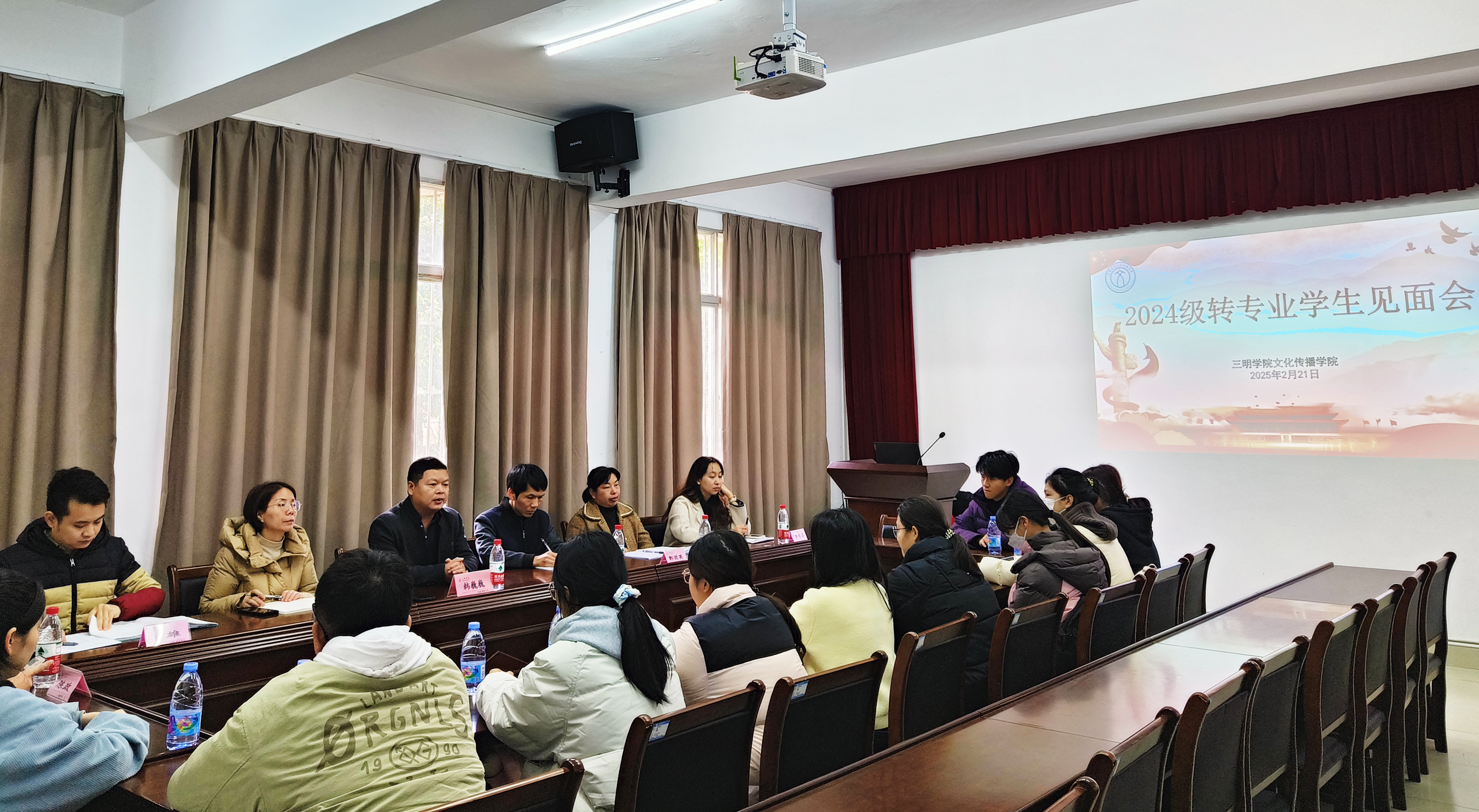 2月21日,文化传播学院2024级转专业学生见面交流会在鸿文楼(一)104会议室召开。学院党委书记韩巍巍、党委副书记范桂英、副院长林阳华、院教务科研科、24级各班辅导员以及全体转专业同学共同参会,围绕专业衔接、学业规划等核心问题展开深入交流。