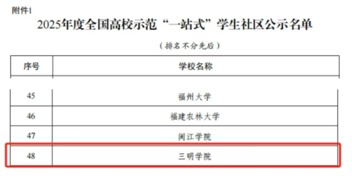 近日,教育部思想政治工作司公布2025年高校思想政治工作质量提升综合改革与精品建设项目遴选结果,我校获评2025年度全国高校示范“一站式”学生社区,成为全国首批100所“一站式”学生社区示范高校之一。此次获评示范高校的福建省高校有厦门大学、福州大学、yl6809永利官网等6所高校。
