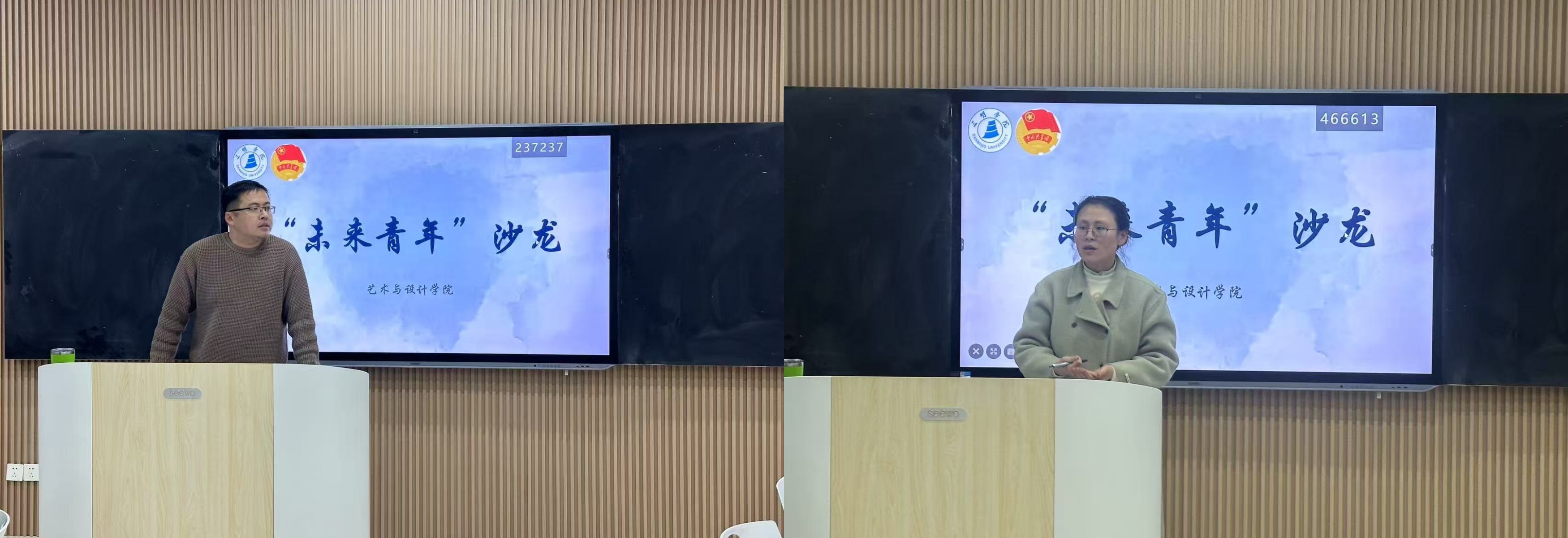 2月25日,艺术与设计学院在艺术楼352教室举办“未来青年”沙龙活动。沙龙由吴一亮老师、方春媚老师主讲,学生代表参加。