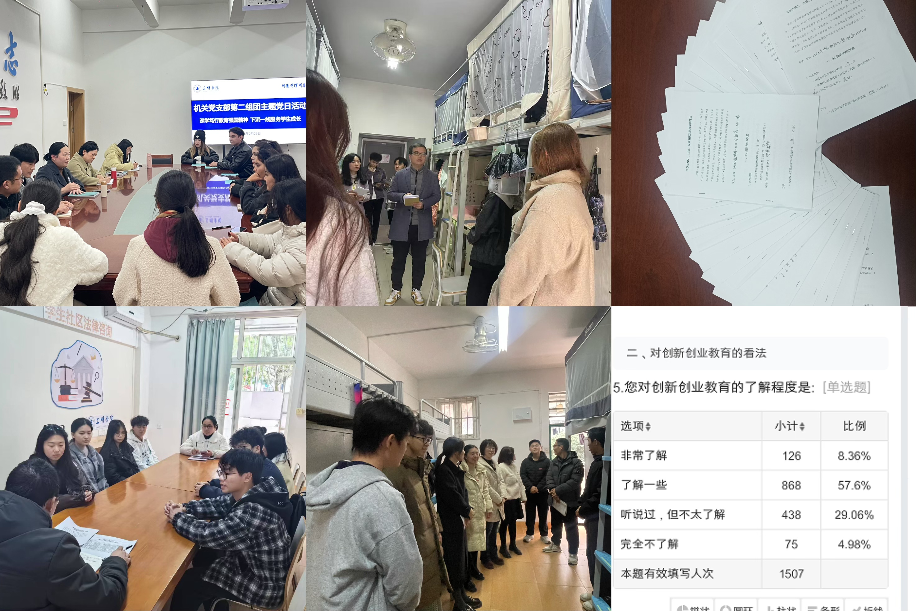 靶向学习明方向。活动前期,机关党支部第二组团聚焦全国教育大会精神、《教育强国建设规划纲要(2024-2035 年)》,开展专题研学。各部门结合职能制定《调研问题清单》;创业管理学院对标“创新创业教育升级”要求,自编《大学生创新创业教育调查问卷》,为精准调研奠定基础。