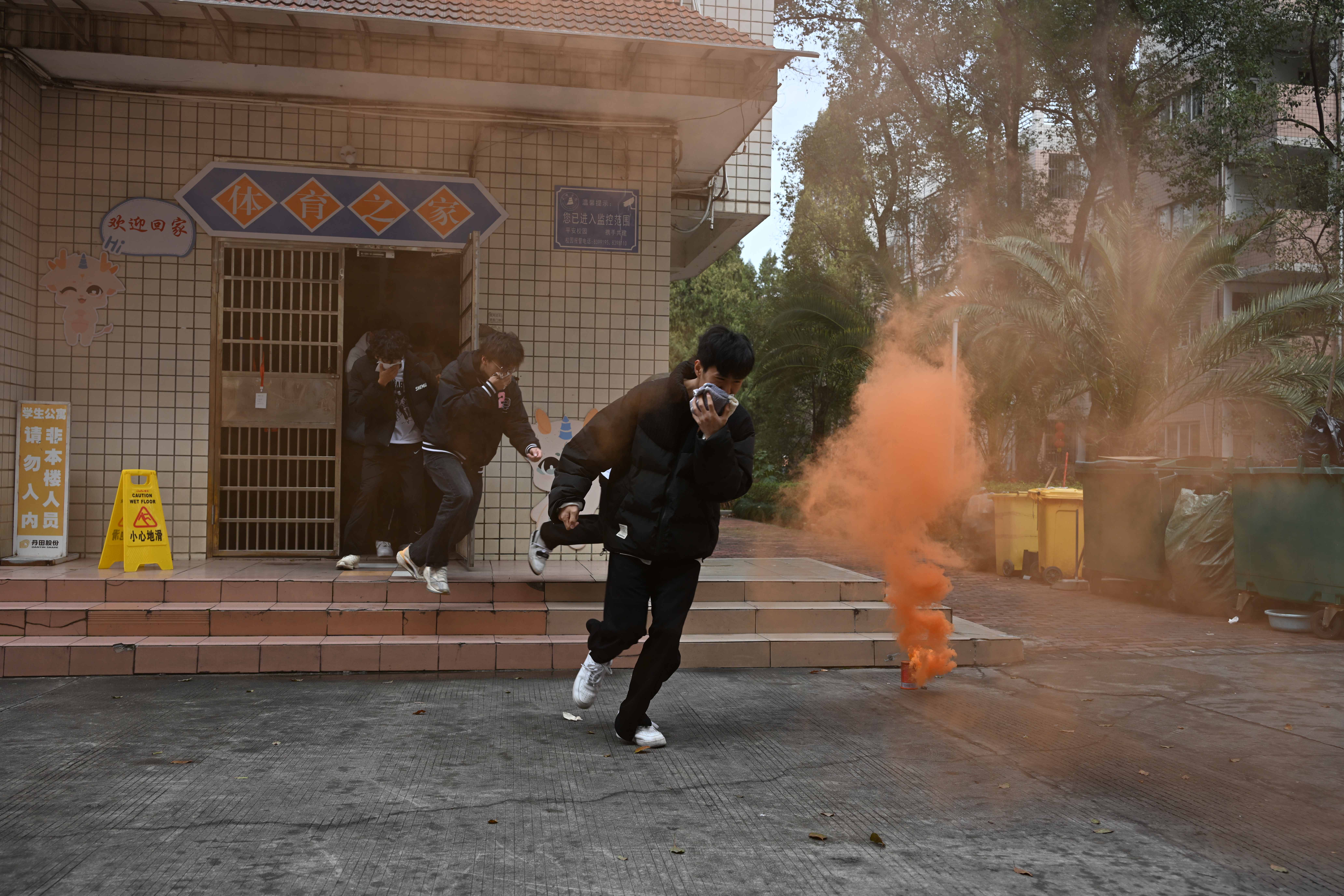 随着警报声响起,演练正式开始。学生们迅速按照预定的逃生路线,用湿毛巾捂住口鼻,低姿前行,有序地撤离到安全区域。整个过程紧张有序,在短短几分钟内,荷花苑4号楼和1号楼的学生全部安全疏散。疏散完成后,yl6809永利官网安全保障中心的同学现场演示了灭火器的使用,并邀请学生们亲身体验了灭火的过程,进一步掌握了消防器材的使用方法。