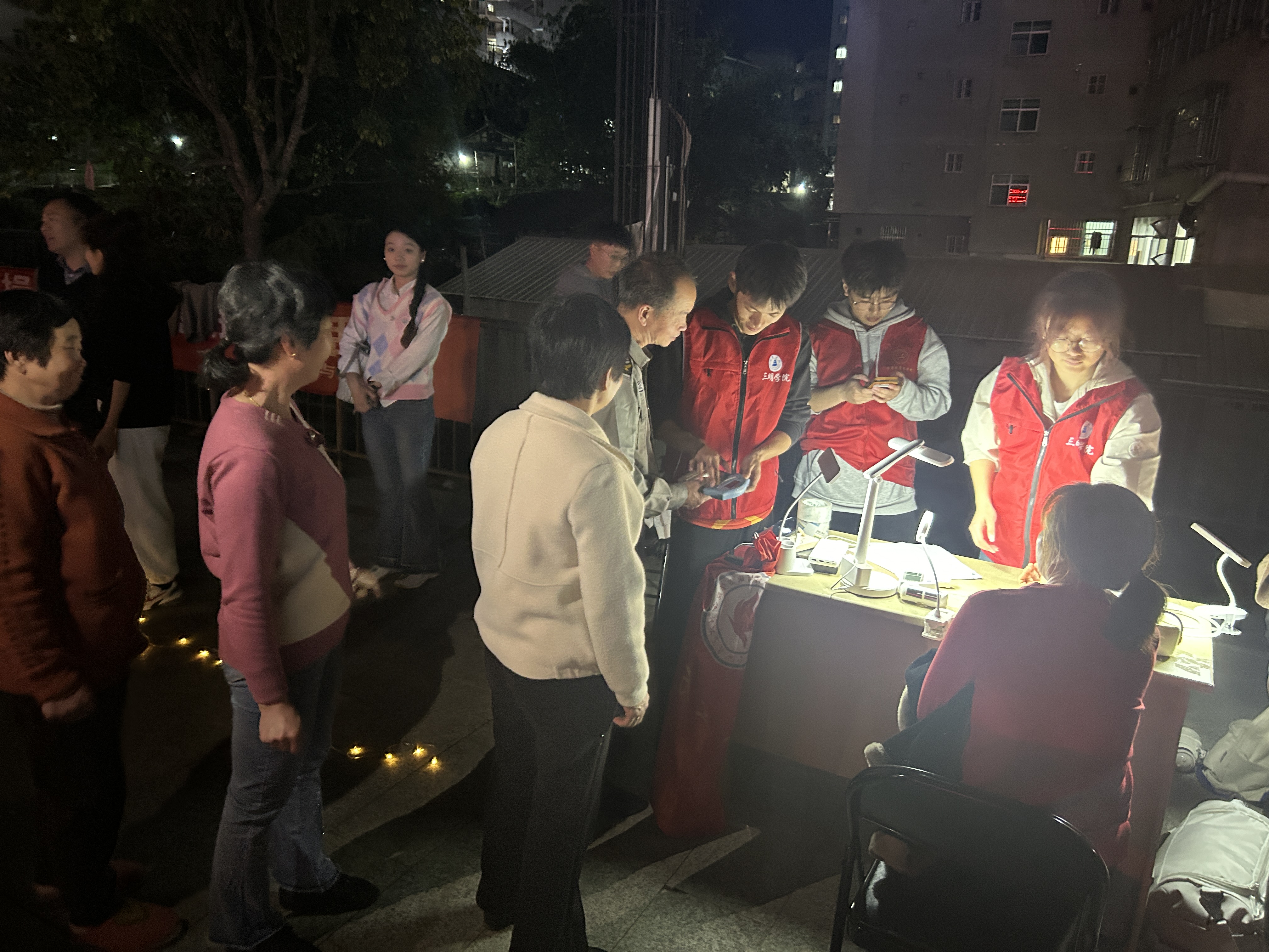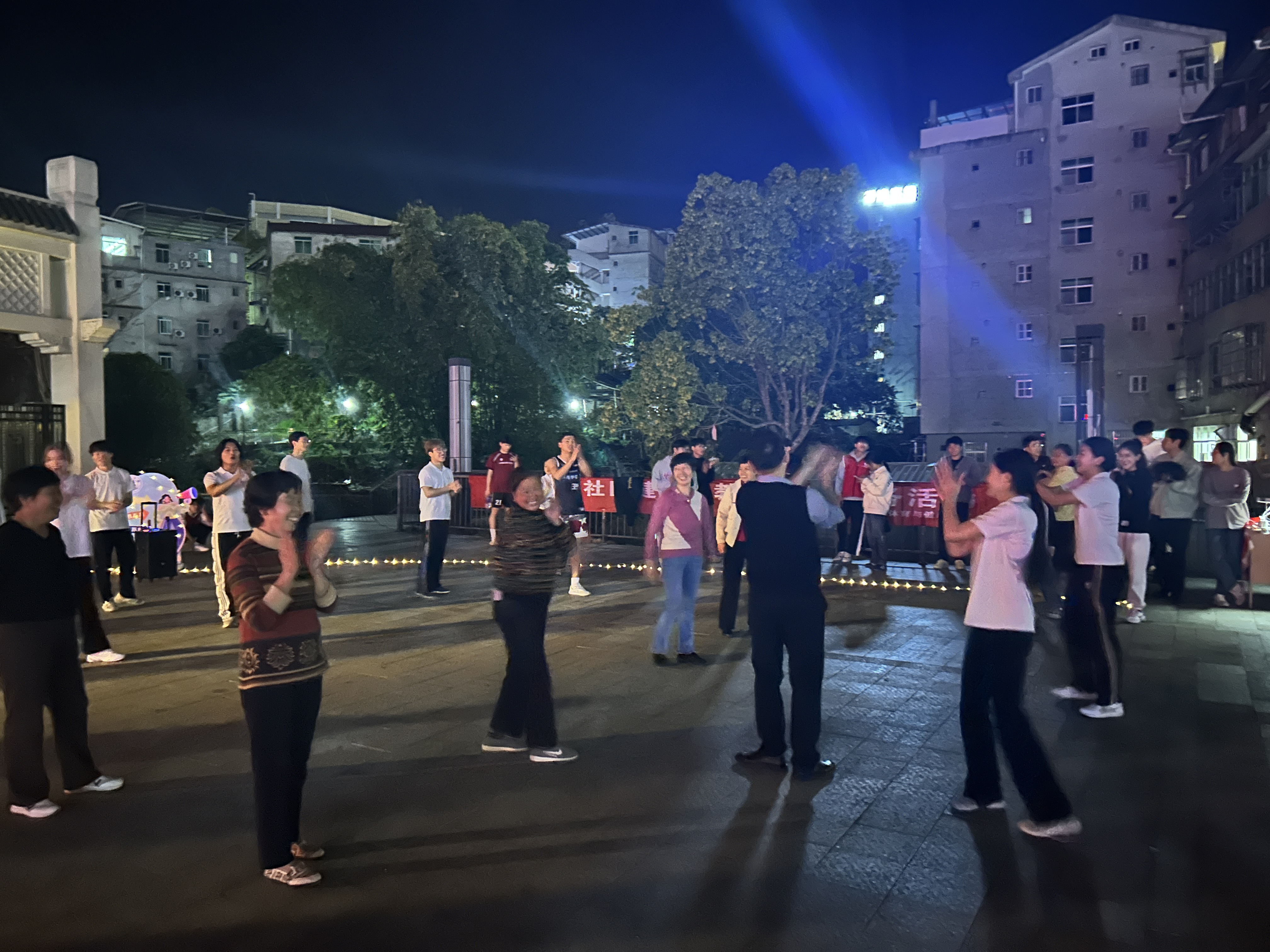 在随后的健身操教学环节,志愿者们耐心细致地带领村民逐一练习动作。从基本的步伐到手臂的伸展,每一个动作都讲解得清晰明了,并手把手地纠正村民们的姿势。健身操教练更是亲自下场,与村民们一同跳动,现场形成了一片欢乐的健身海洋。教学结束后,教练还带领大家一起做放松动作,帮助村民缓解运动后的肌肉疲劳。除了健身操教学外,体育与康养学院团委还精心策划并实施了专业体质健康检测,全方位关注社区居民的身体健康状况。