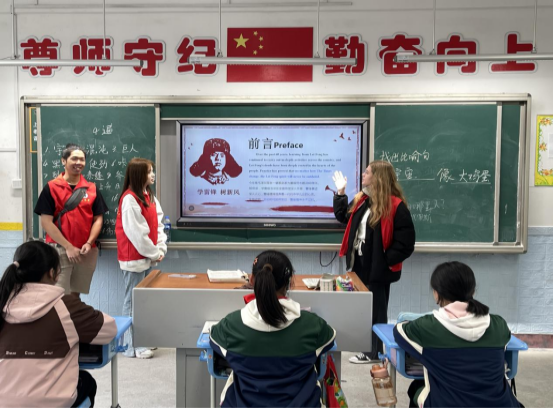 “雷锋日宣讲”活动由海外学院(外国语学院)外教老师吴迪主持,他通过生动的影像资料与图片展示形式,用中英双语讲述了雷锋的生平故事和经典语录,深度解读“钉子精神”与“奉献精神”的时代内涵。宣讲不仅让孩子们感受到榜样的力量,也让留学生志愿者们深刻领悟雷锋精神的普世价值——“助人无国界,善举暖人心”。