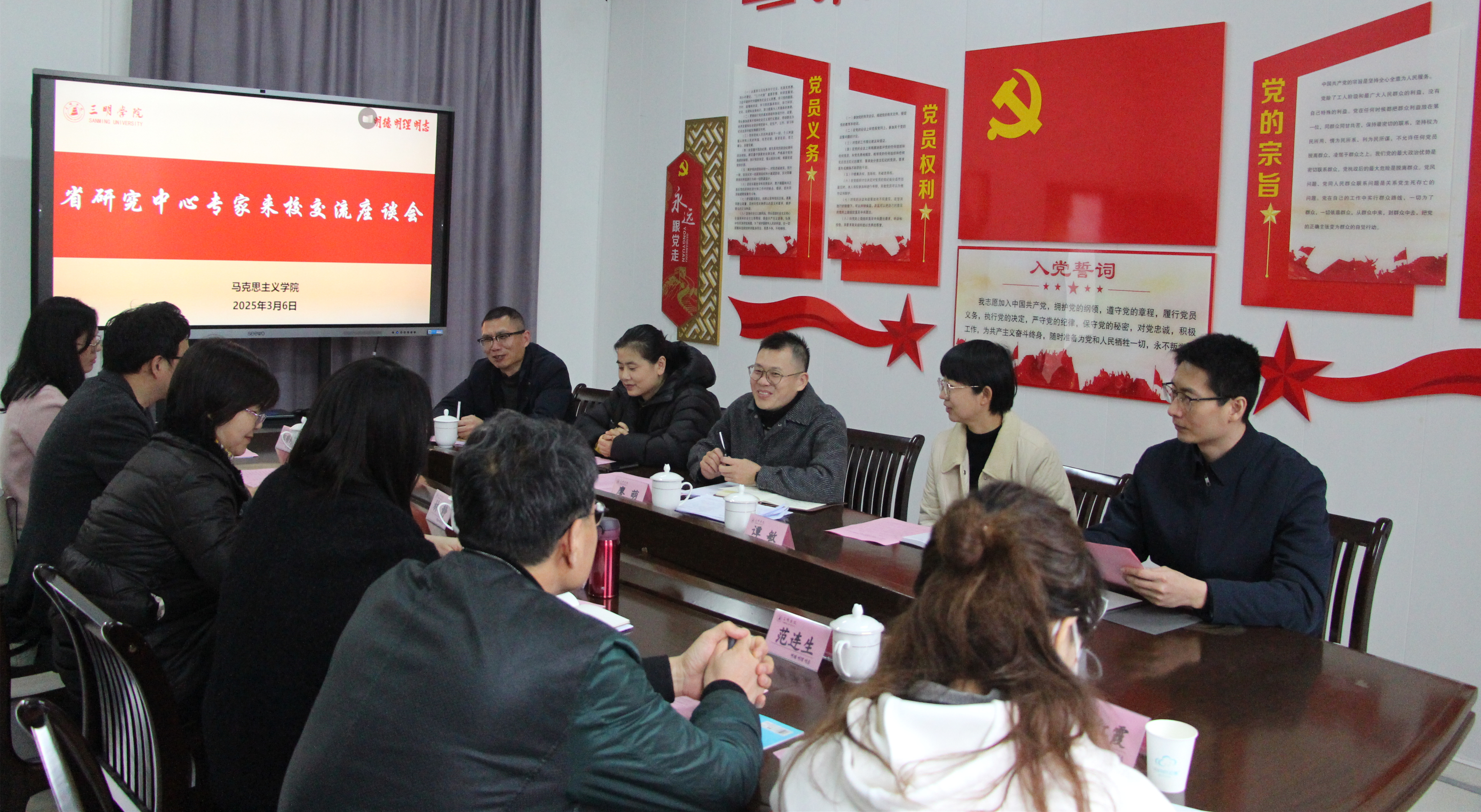 3月6日下午,福建社会科学院综合协调处副处长、副研究员廖萌一行莅临马克思主义学院进行指导交流。三明市委宣传部部务会成员、市委讲师团团长陈首龙、校科技处副处长、马克思主义学院副院长、学科带头人以及福建省习近平新时代中国特色社会主义思想研究中心项目立项的教师参加。