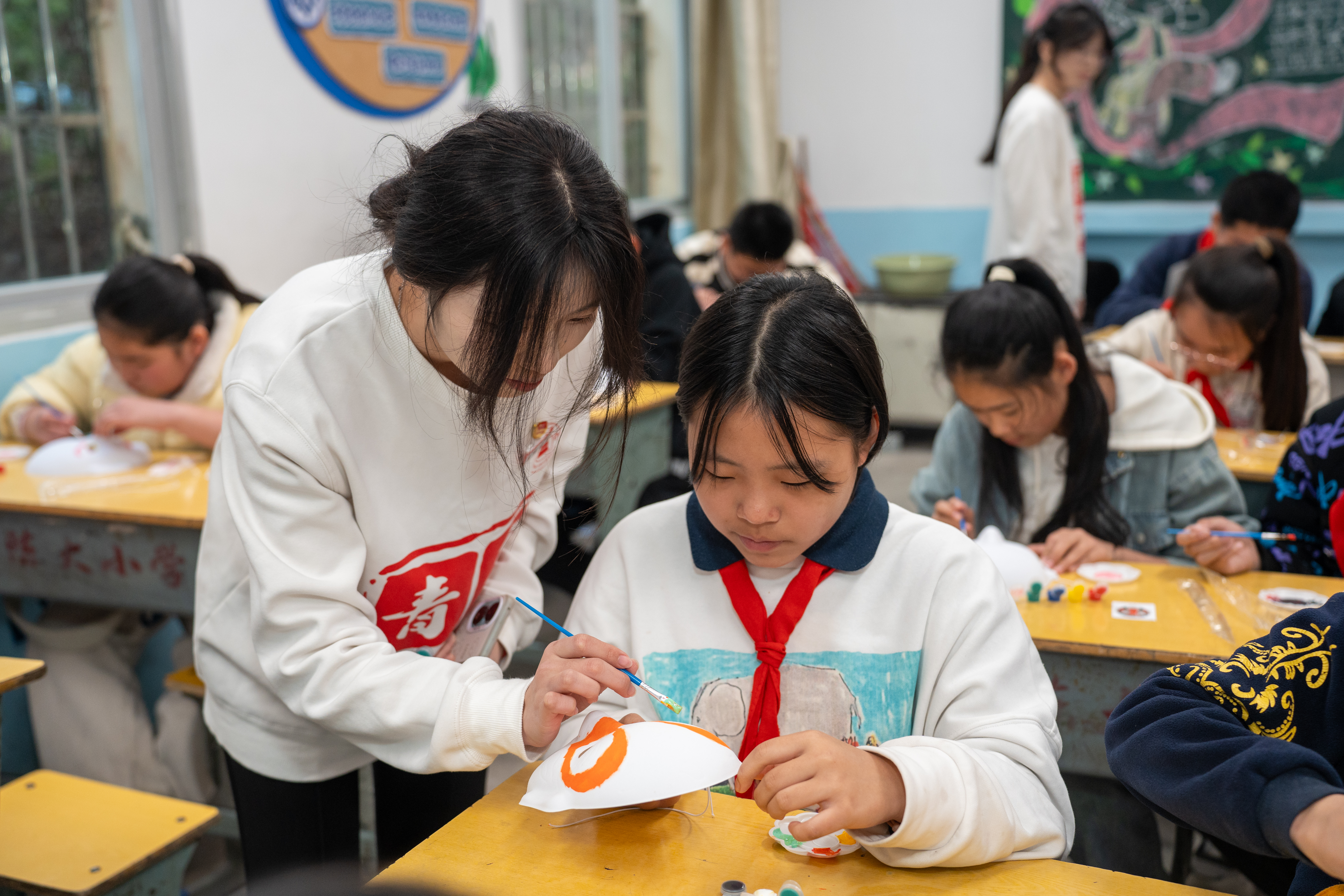 为了让同学们更加直观地了解京剧文化,志愿者由视频鉴赏京剧环节,链接脸谱绘画的实践活动,志愿者们耐心细致地进行指导,先为孩子们示范了简单的线条勾勒技巧与色彩搭配方法。孩子们全神贯注地观察学习,纷纷拿起画笔,大胆发挥创意。在一笔一画的脸谱创作过程中,孩子们不仅提升了动手能力,更深入地了解了国粹的丰富内涵,真切感受到了传统艺术的独特魅力。