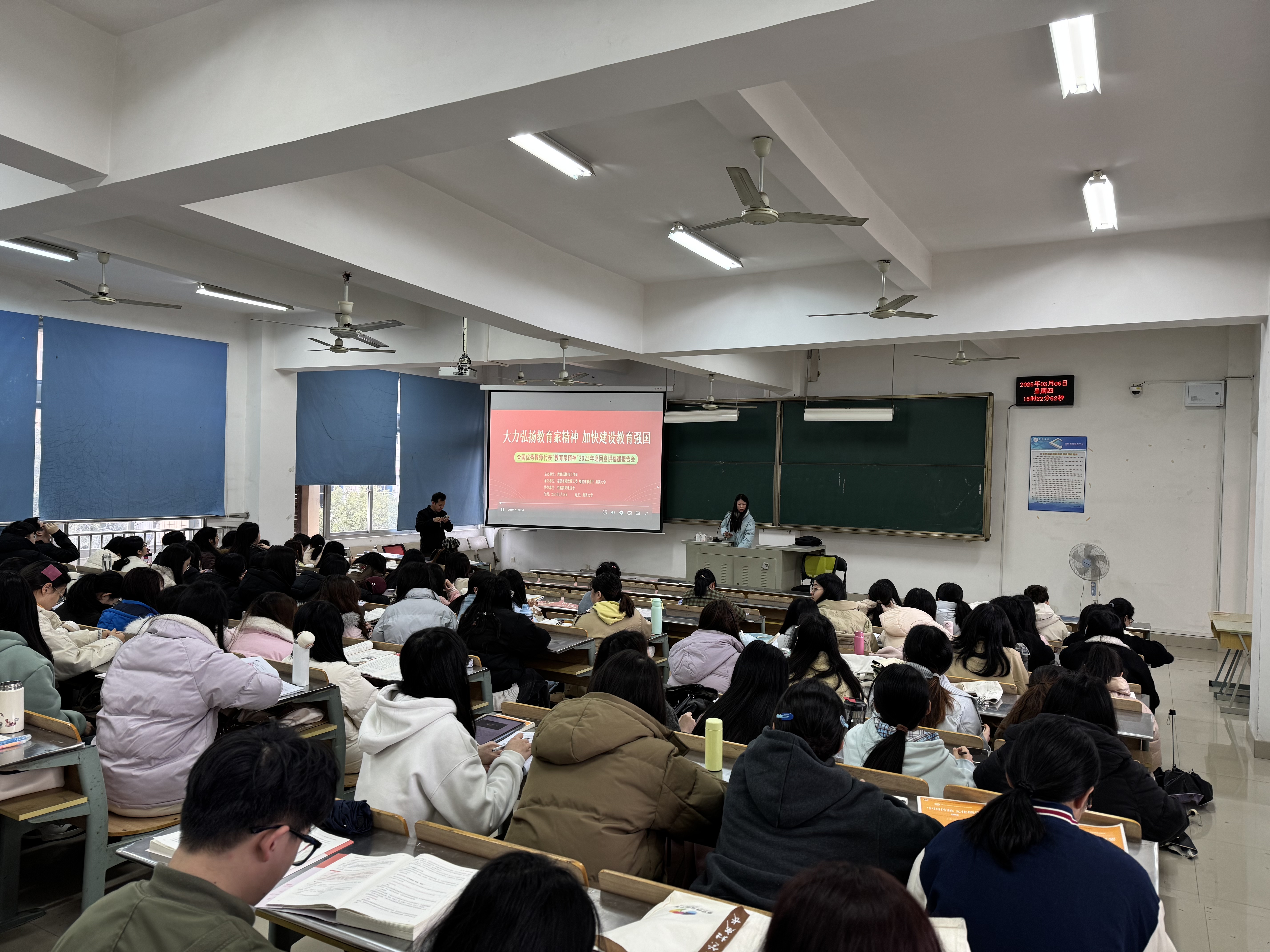 近日,yl6809永利官网教育与音乐学院积极响应教育家精神号召,组织行政、教辅人员及全体学生,于明德楼(一)224、靖远楼101等地集中观看以“大力弘扬教育家精神,加快建设教育强国”的全国优秀教师代表“教育家精神”2025年巡回宣讲福建报告会。此次活动意义深远,旨在激励学院师生深入领会教育家精神,为未来投身教育事业筑牢思想根基。