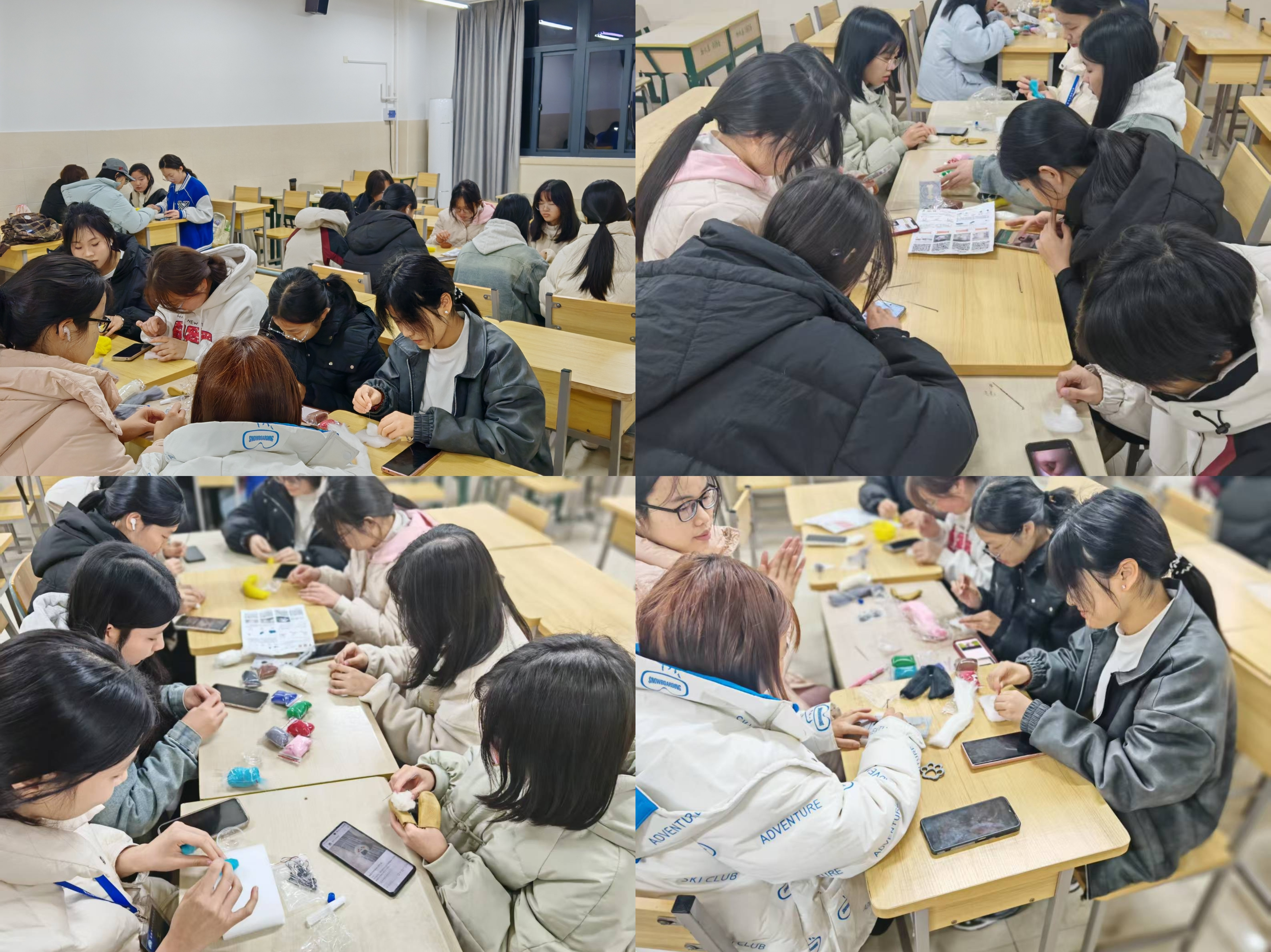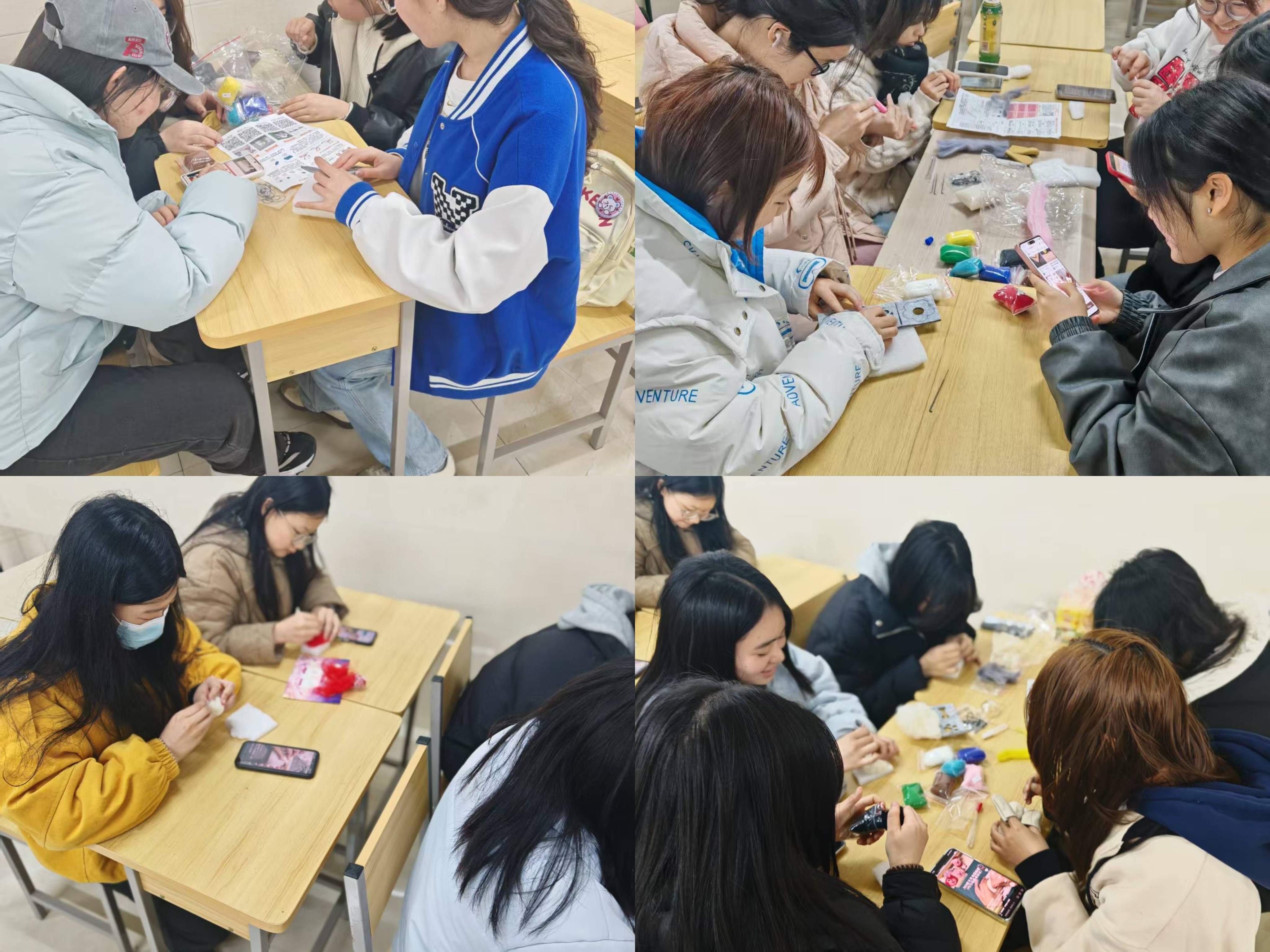 活动过程中,同学们发挥创意,将各种动物、花卉等图案融入作品,作品的每个细小变化都凝聚着巧思与匠心,诉说着女性细腻的情感与坚韧的力量,她们积极交流心得经验,互相欣赏作品,分享制作过程中的趣事,现场气氛温馨热烈。
