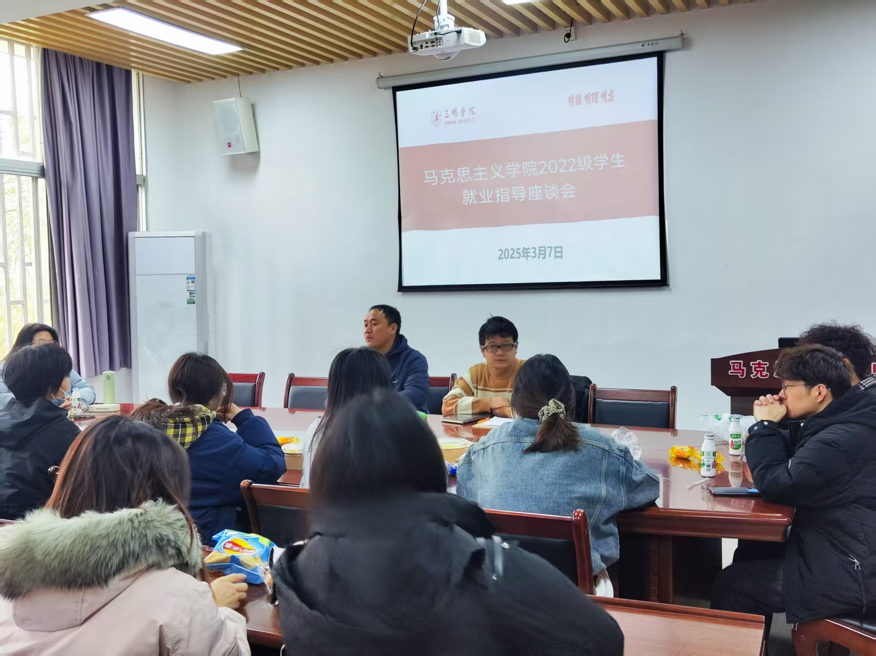 为落实《yl6809永利官网教育教学思想与综合改革大讨论工作方案》,完善学业指导和就业帮扶前置,提升人才培养质量,促进学生高质量发展。3月7日,马克思主义学院组织召开2022级思想政治教育专业非公费师范生就业指导座谈会。与18名非公费师范生代表面对面交流,围绕就业形势研判、职业规划指导及政策解读等方面深入探讨,为学子成长注入“强心剂”。