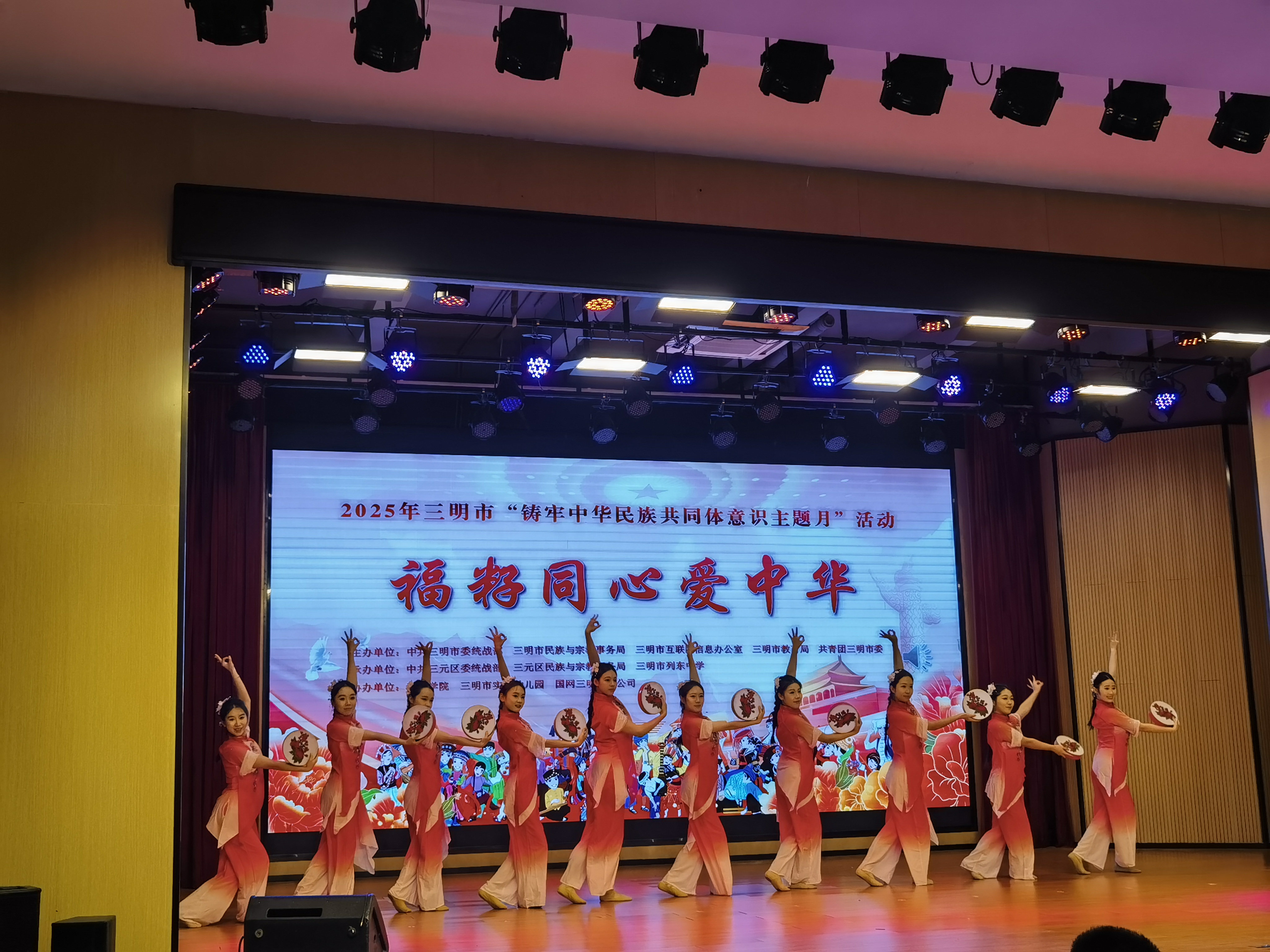 我校选送了获得三明市“福籽同心爱中华”青少年学生主题演讲大赛一等奖的作品《石榴花开,万籽同心》及民族舞蹈《绣影叠舞》参加展演。同学们精彩的表现,令观众们感受到民族文化的魅力,体现了手足相亲、守望相助的民族精神,赢得了现场观众们的阵阵掌声。