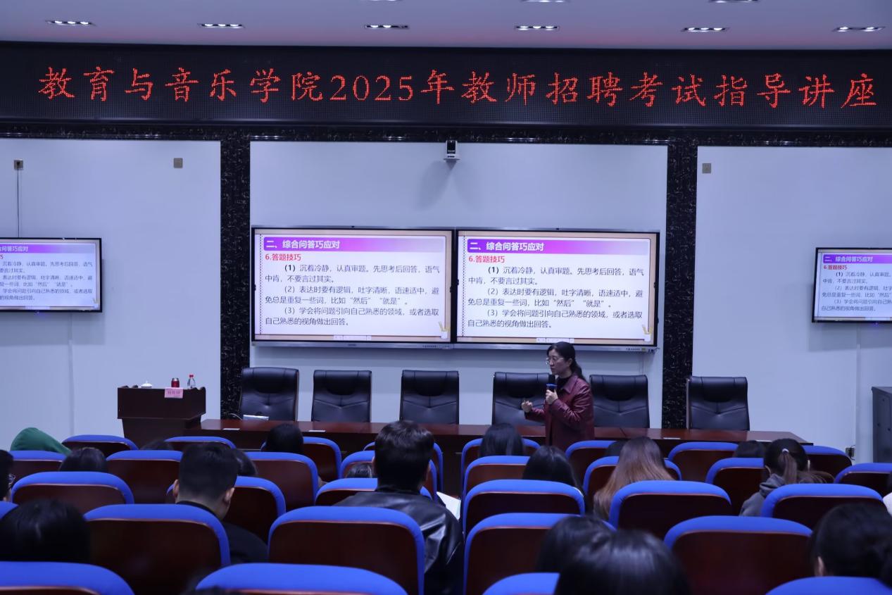 此次讲座为备考教师招聘考试的教育与音乐学院2025届毕业生们提供了全方位的指导。他们纷纷表示,通过这次讲座,明确了备考方向,增强了信心。相信在这些技巧与经验的助力下,考生们一定能在教师招考中脱颖而出,顺利开启教师生涯。