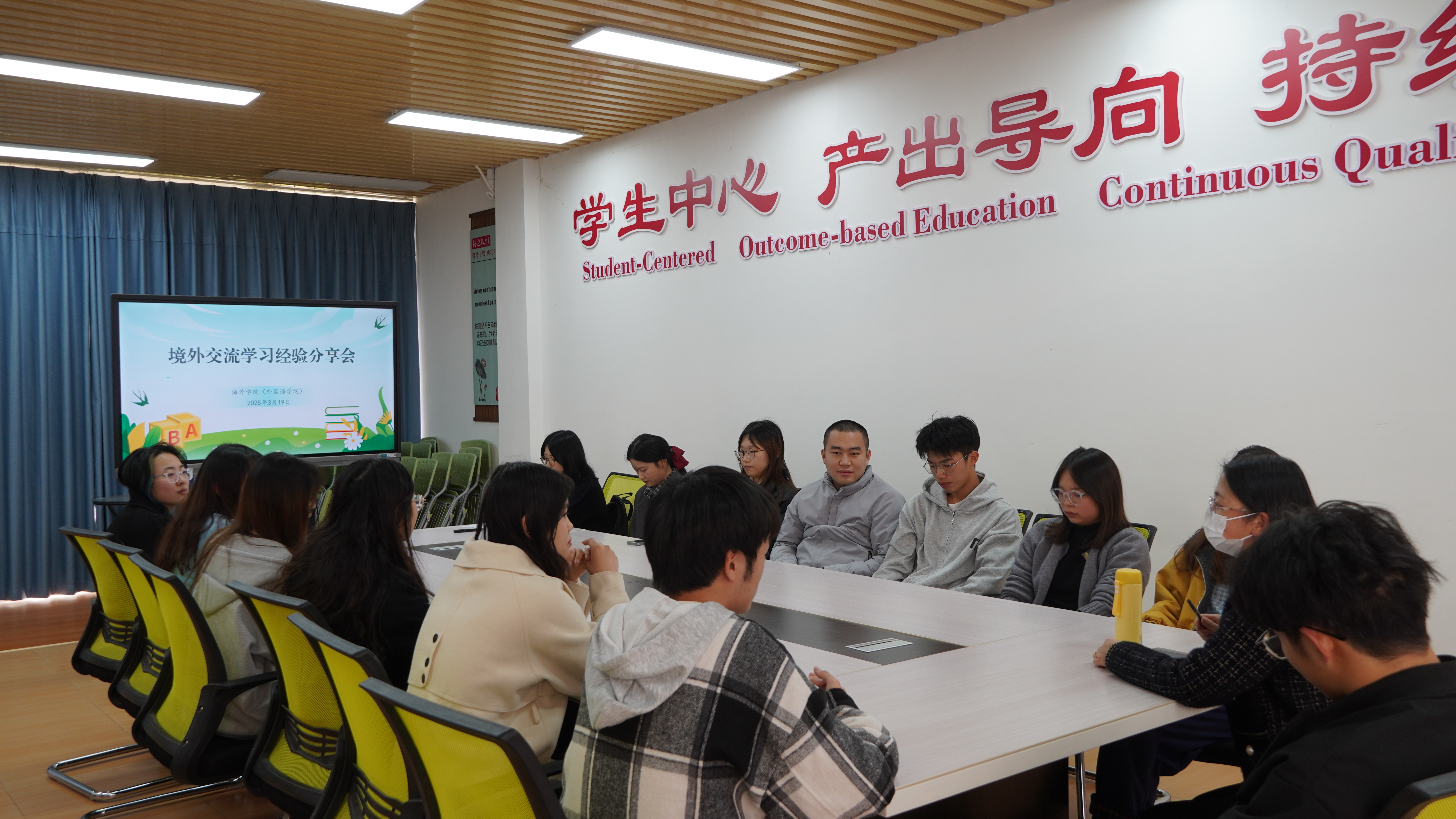为鼓励学生积极参加境外交流学习项目,拓宽国际视野,3月19日下午,海外学院(外国语学院)于鸿文楼(二)C107会议室召开境外交流学习经验分享会,往期参加澳门科技大学和马来亚大学交流的4名学生代表、15名意向参加交流项目的学生参加了此次分享会。