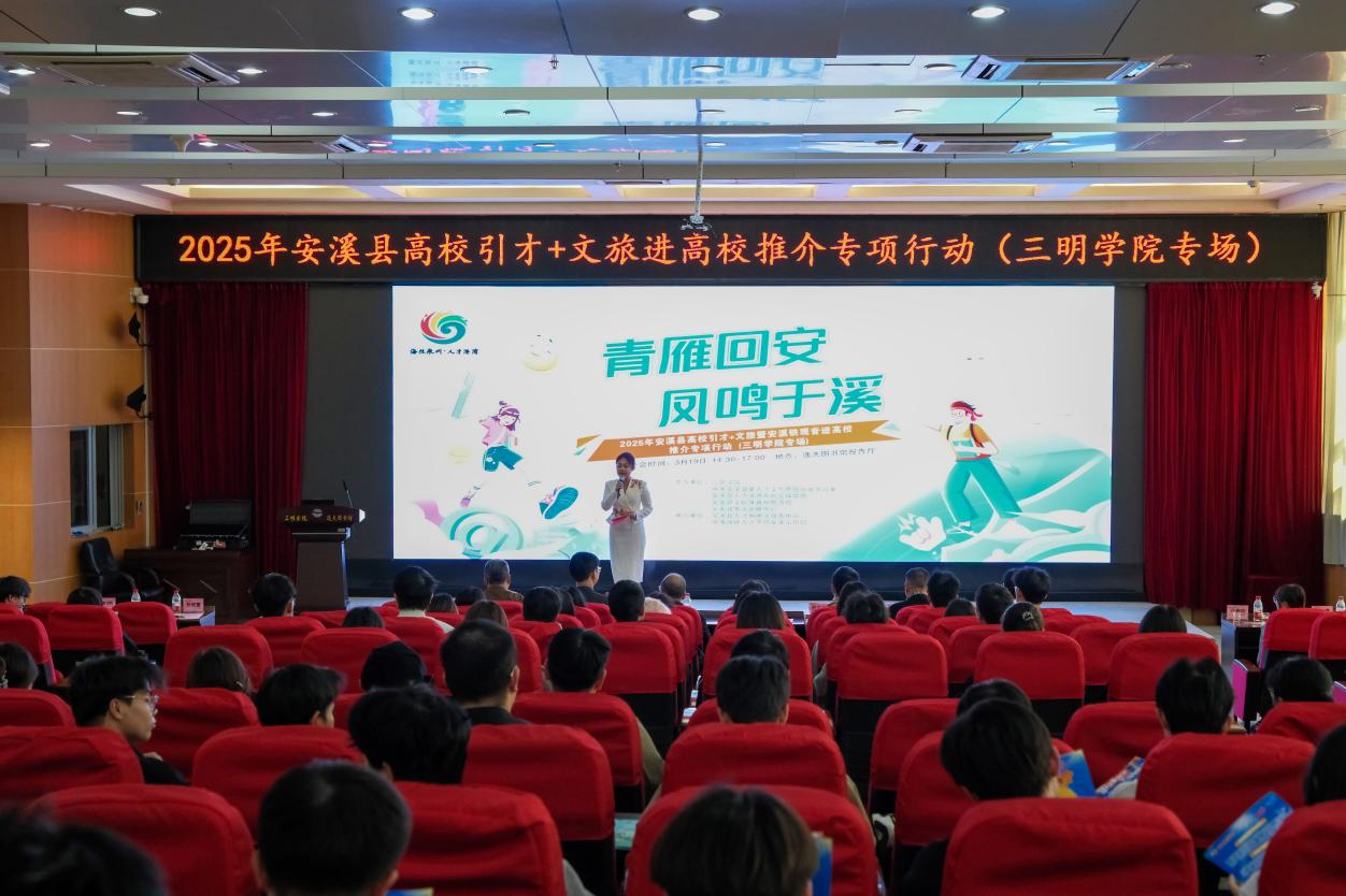 2025年3月19日下午,yl6809永利官网图书馆报告厅内茶香氤氲、人头攒动,安溪县“青雁回安•凤鸣于溪”高校引才+文旅暨安溪铁观音进高校推介专项行动在此拉开帷幕。活动以“引才聚智”为核心,同步推介安溪文旅资源与茶文化,吸引了近200名师生及企业代表参与,现场气氛热烈。
