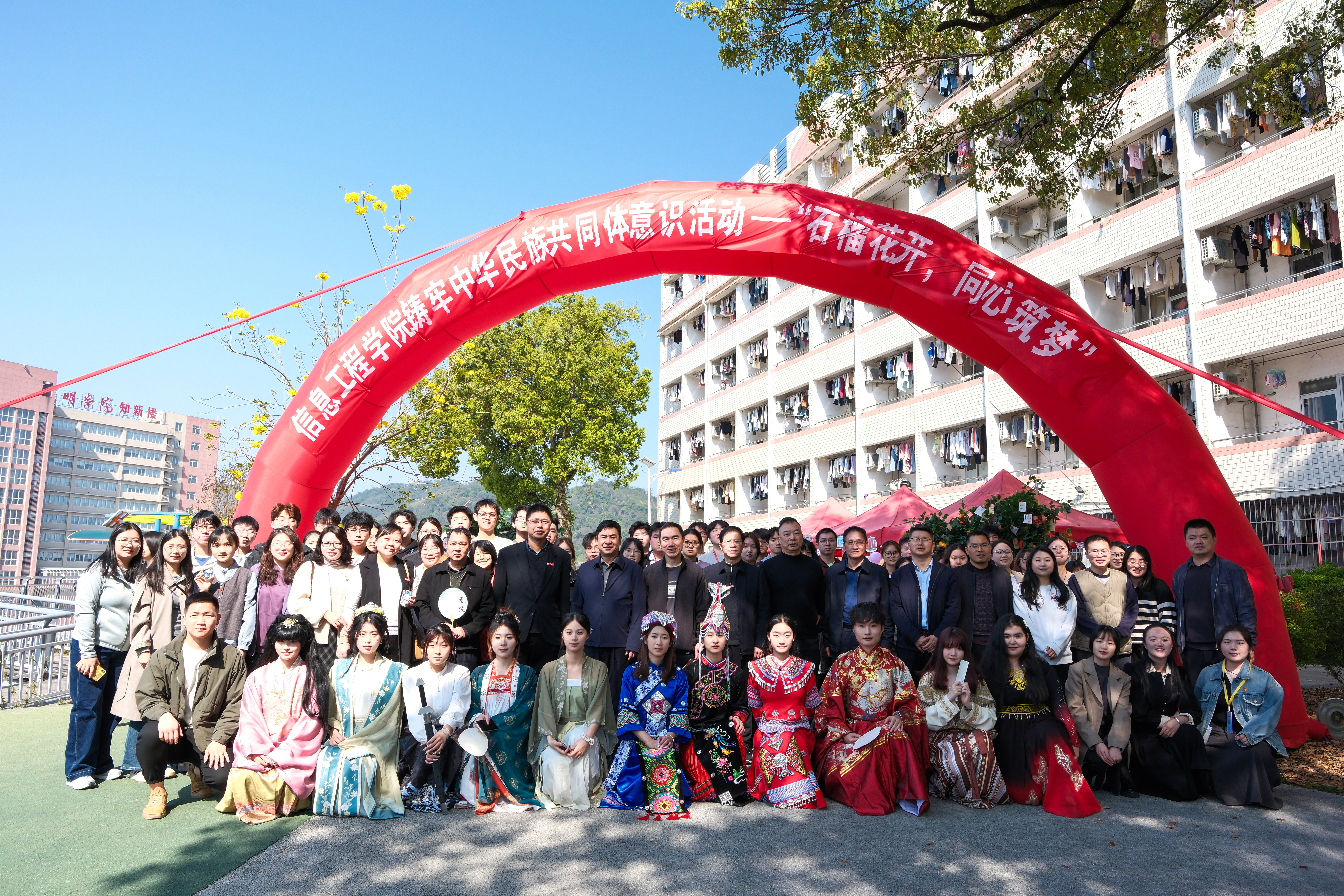 为铸牢中华民族共同体意识,促进各民族文化交流,3月22日,信息工程学院在南区智慧体育公园成功举办“石榴花开,同心筑梦”主题游园活动。校纪委书记游龙桂、纪检监察室党支部、审计处党支部和来自汉族、白族、藏族、维吾尔族等6个民族的200余名师生齐聚一堂,通过沉浸式民族文化体验,共绘民族团结“同心圆”。