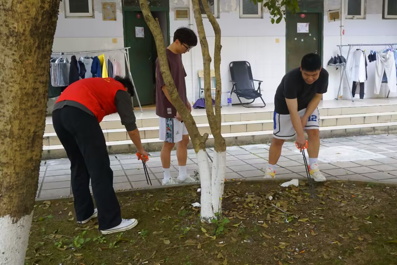卫生清扫共同努力,美化社区大环境。志愿者分组对社区楼栋公共区域、绿化带、楼道等进行全面清扫,清理垃圾死角,并对社区开放自习室进行清扫整治。学生党员陈仁利表示:“作为新时代学生党员,我们要将雷锋精神融入日常,从身边小事做起,为同学办实事、为社区添活力,让党旗在志愿服务一线高高飘扬!”
