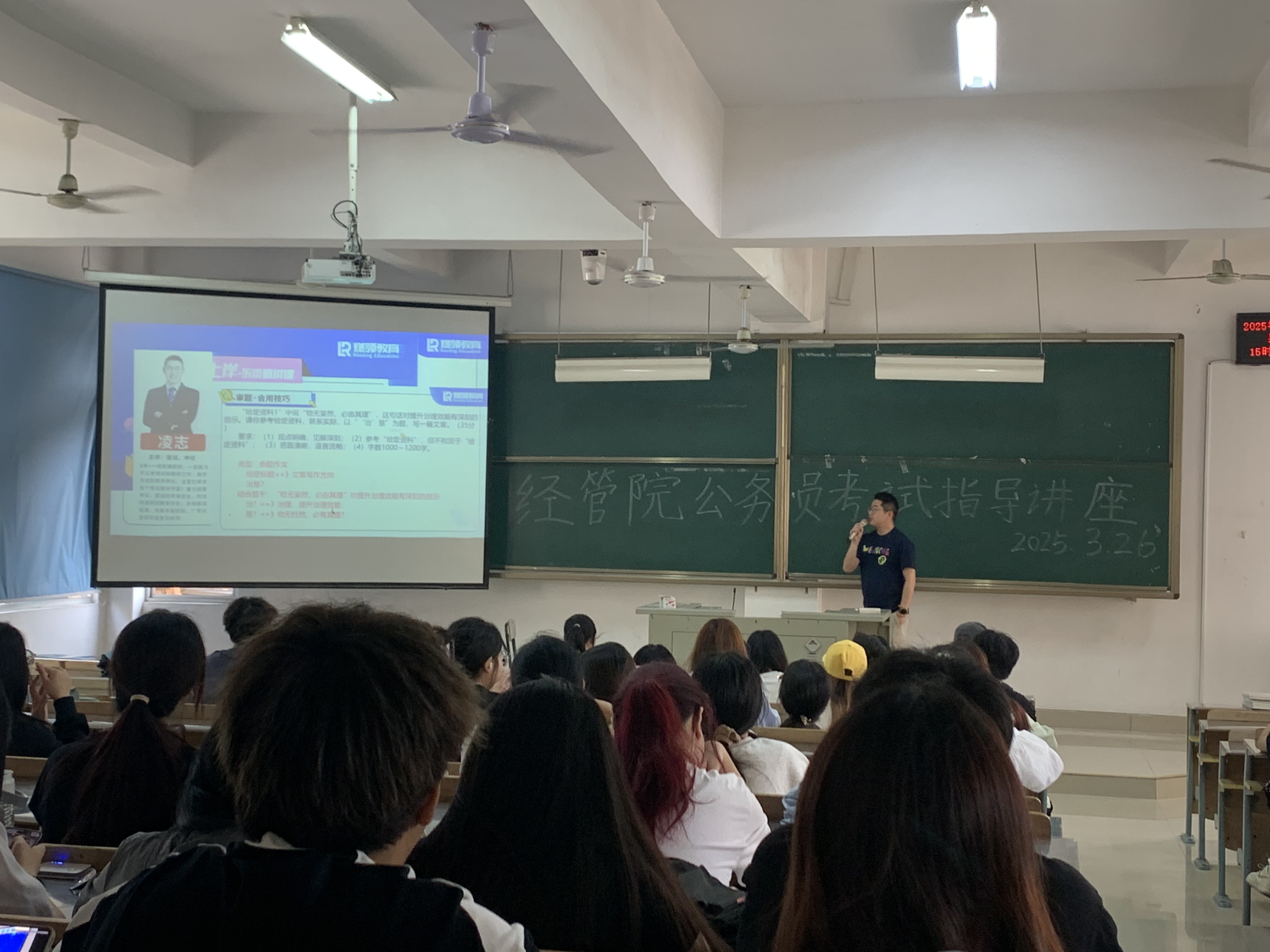 为帮助学生深入了解公务员考试,提升备考效率,3 月 26 日,经济与管理学院在厚德楼成功举办了“一站式”2026 年公务员考试指导讲座,特邀优公教育进行专业指导,众多经管学子踊跃参加。
