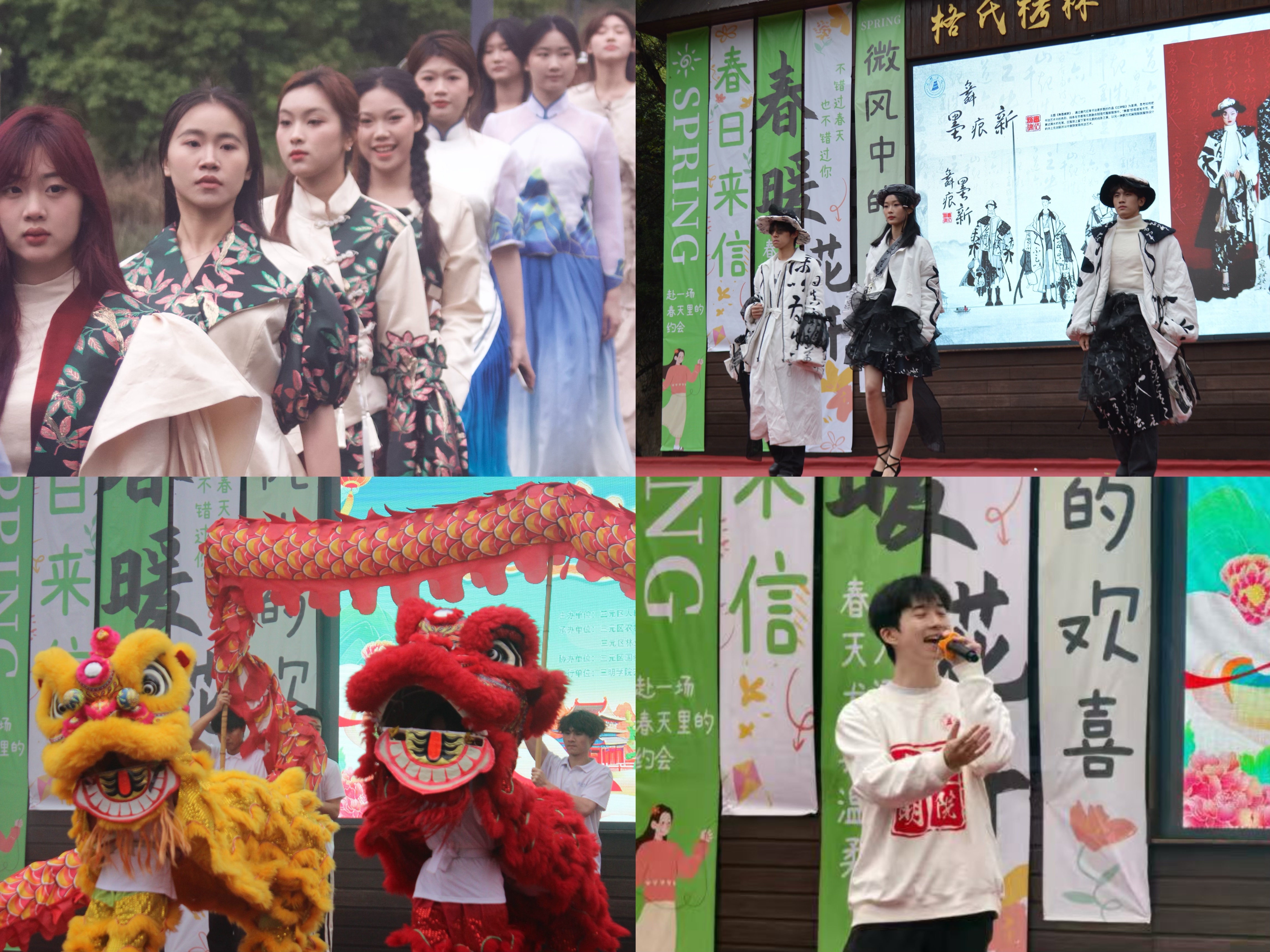 在栲花的芬芳中,艺术与设计学院模特协会带来了精彩的时装秀表演。同学们身着具有民族特色的原创服装,穿梭在栲花当中,将时尚与自然完美融合。此外,体育与康养学院的学生们带来了精彩绝伦的舞龙舞狮表演,教育与音乐学院的学生们用美妙的歌声为现场增添浪漫氛围,为游客们带来了一场视听盛宴。