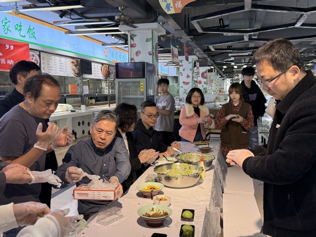 活动现场,墨绿艾草香与糯香交织,勾勒出最地道的清明气息。在食堂师傅的指导下,两岸师生挽袖揉面、包馅塑形,将春日情怀揉进绵软的青团。