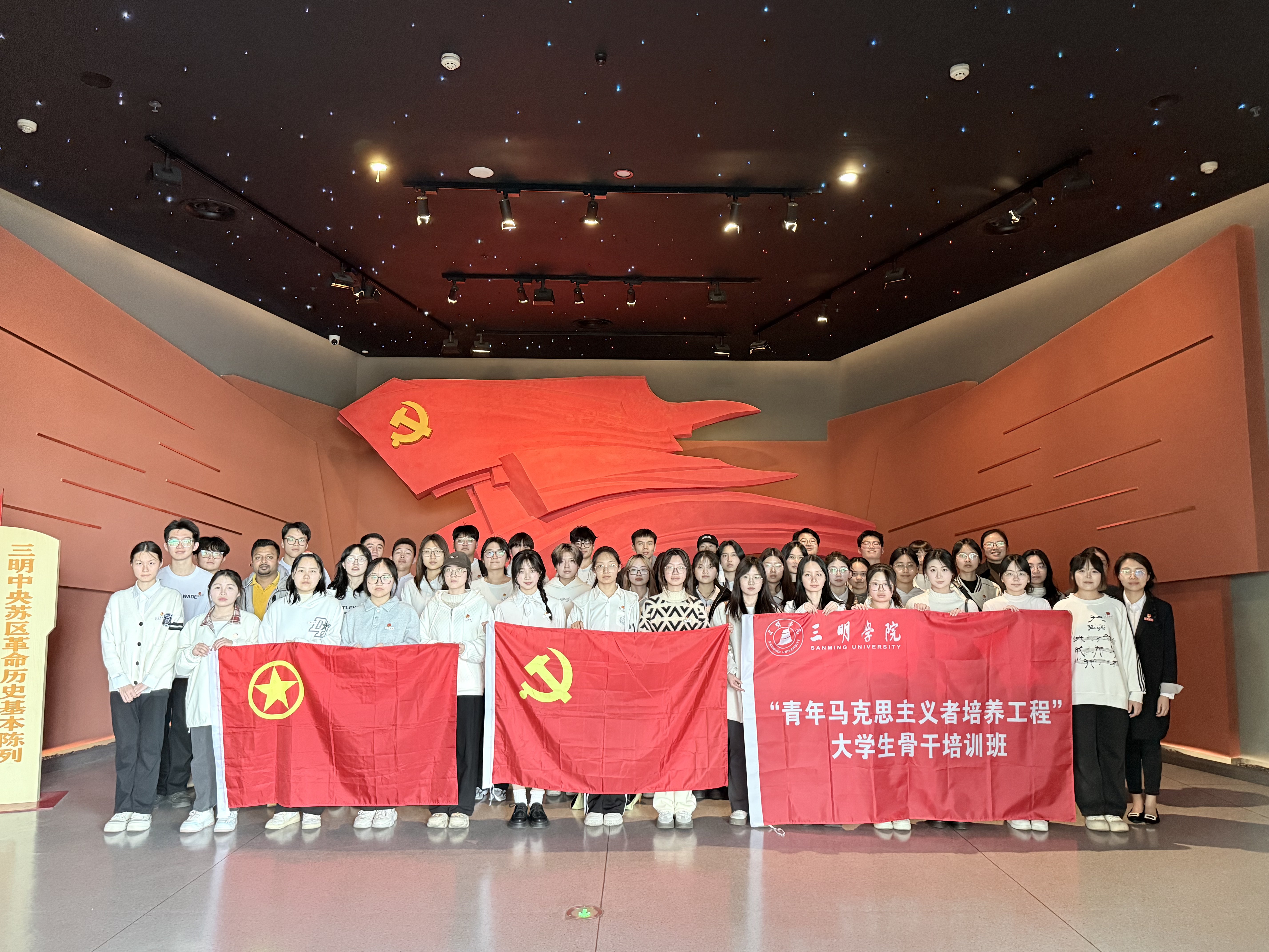 在参观过程中,师生们仔细观看纪念馆内展示的历史文物、珍贵图片和生动场景,被革命先烈的大无畏精神所触动,进一步深刻体会三明作为中央苏区核心区、中央红军长征出发地、红旗不倒的革命根据地、伟人革命的重要实践地的重要历史意义。文化传播学院戴言同学说:“博物馆中斑驳的文物与泛黄照片,将三明的红色基因生动镌刻。在建设革命老区高质量发展示范区的征程中,大骨班学子当以史为炬,在专业领域精进笃行,让青春在服务闽西北振兴中绽放灼灼光华。”