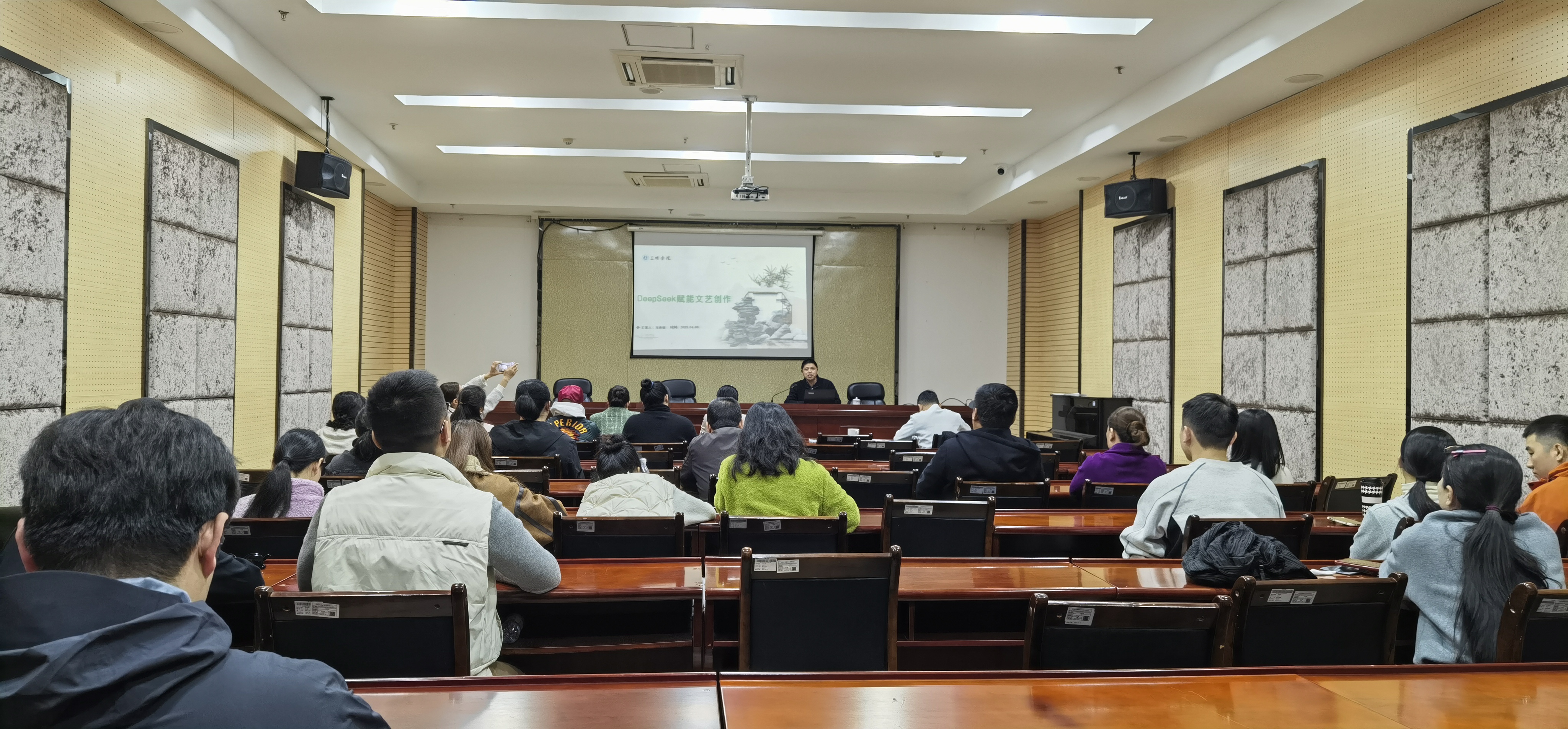 讲座中,刘院长从“AI与文艺创作的新纪元”切入,系统阐释了人工智能技术对文艺生态的重塑路径,重点介绍了DeepSeek在文本生成、音乐创作、图像设计及剧本编排等领域的“文艺赋能工具箱”。通过AI赋能文案、音乐及视频创作等案例,解析了AI技术通过数据分析、风格迁移等手段赋能艺术创作的技术逻辑,同时强调需在版权保护、原创性界定及人机协作边界等伦理议题上凝聚共识。三明市客家文化艺术中心负责人指出:“未来将持续探索科技赋能的文艺惠民路径,打造兼具思想性、艺术性与时代性的作品。”