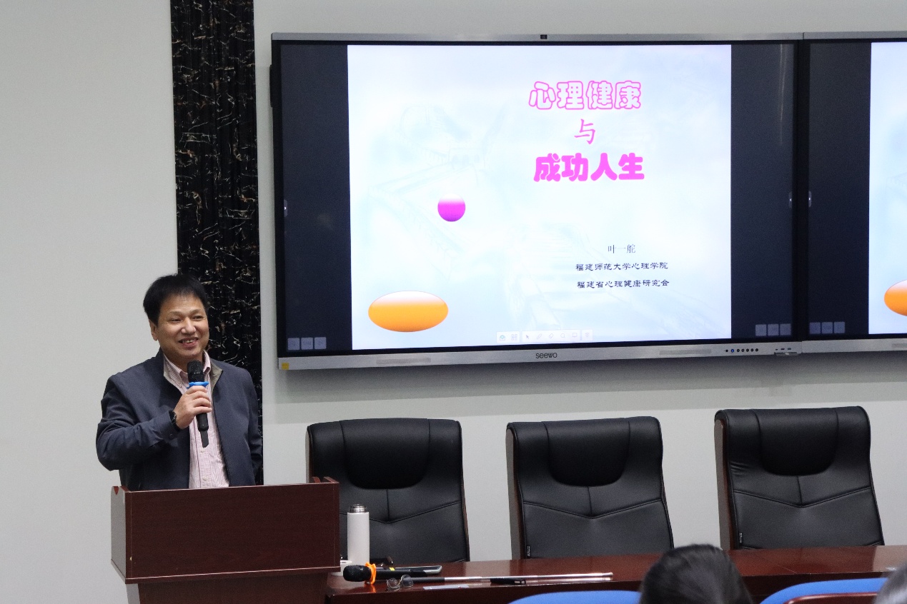 4月8日上午,靖远楼101报告厅内座无虚席,福建师范大学叶一舵教授应邀为我院师生带来一场主题为“心理健康与成功人生”的精彩学术讲座。叶一舵教授在心理学领域建树颇丰,不仅是博士生导师、“宝琛计划”特聘岗位教授,还是中国心理学会认定的心理学家与闽江科学传播学者,在业界享有极高声誉。本次讲座由教育与音乐学院艾述华院长主持。