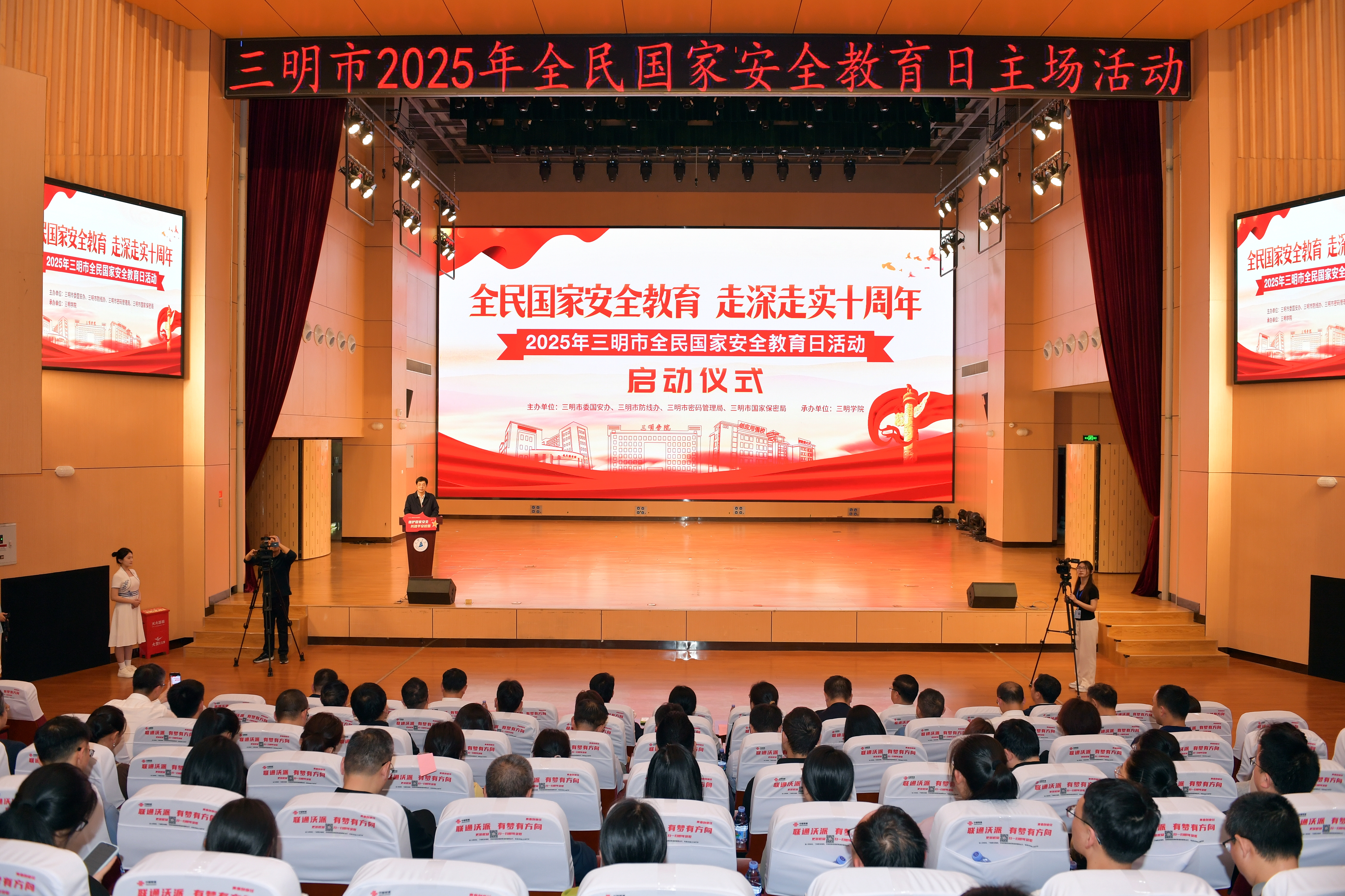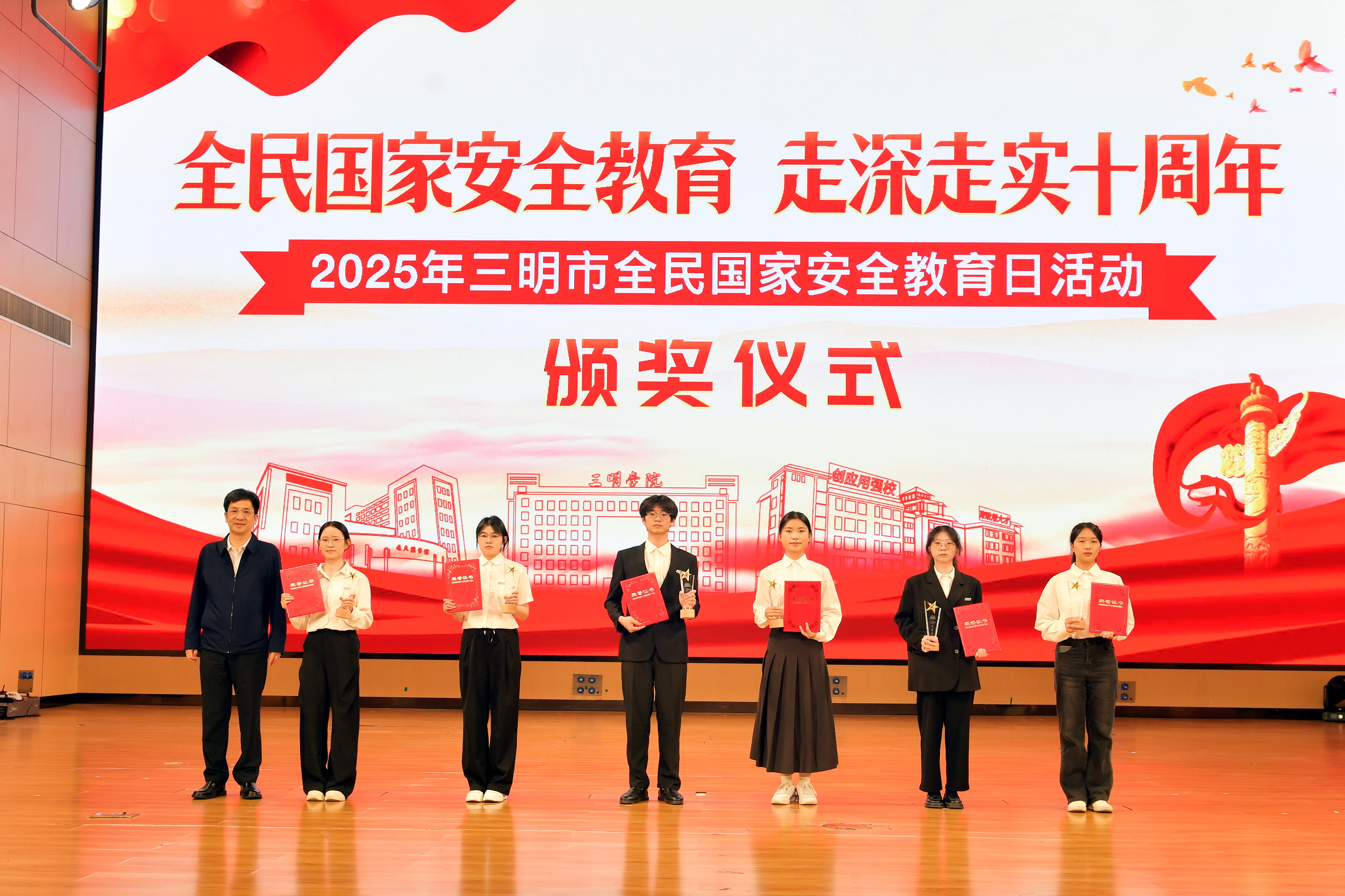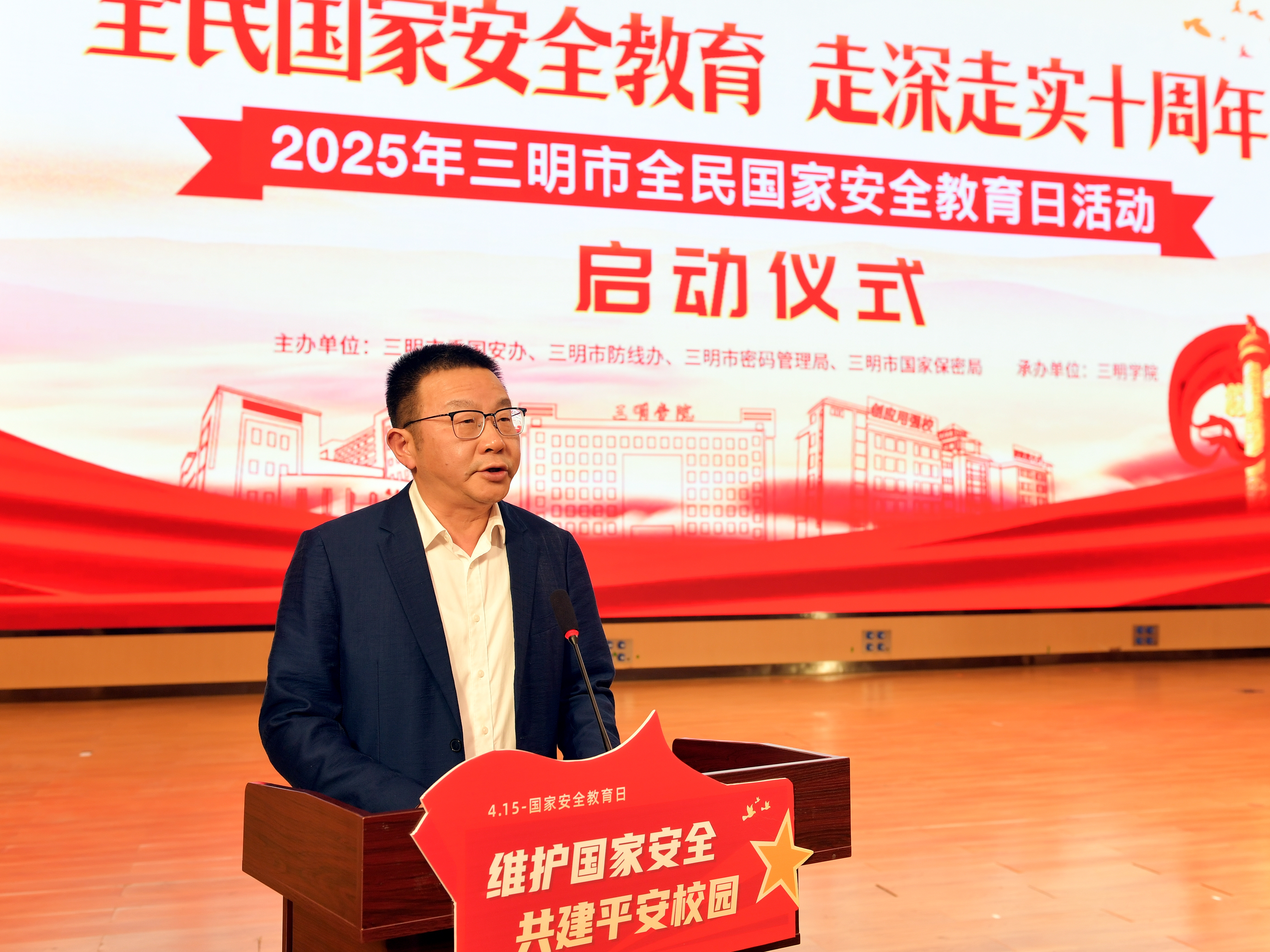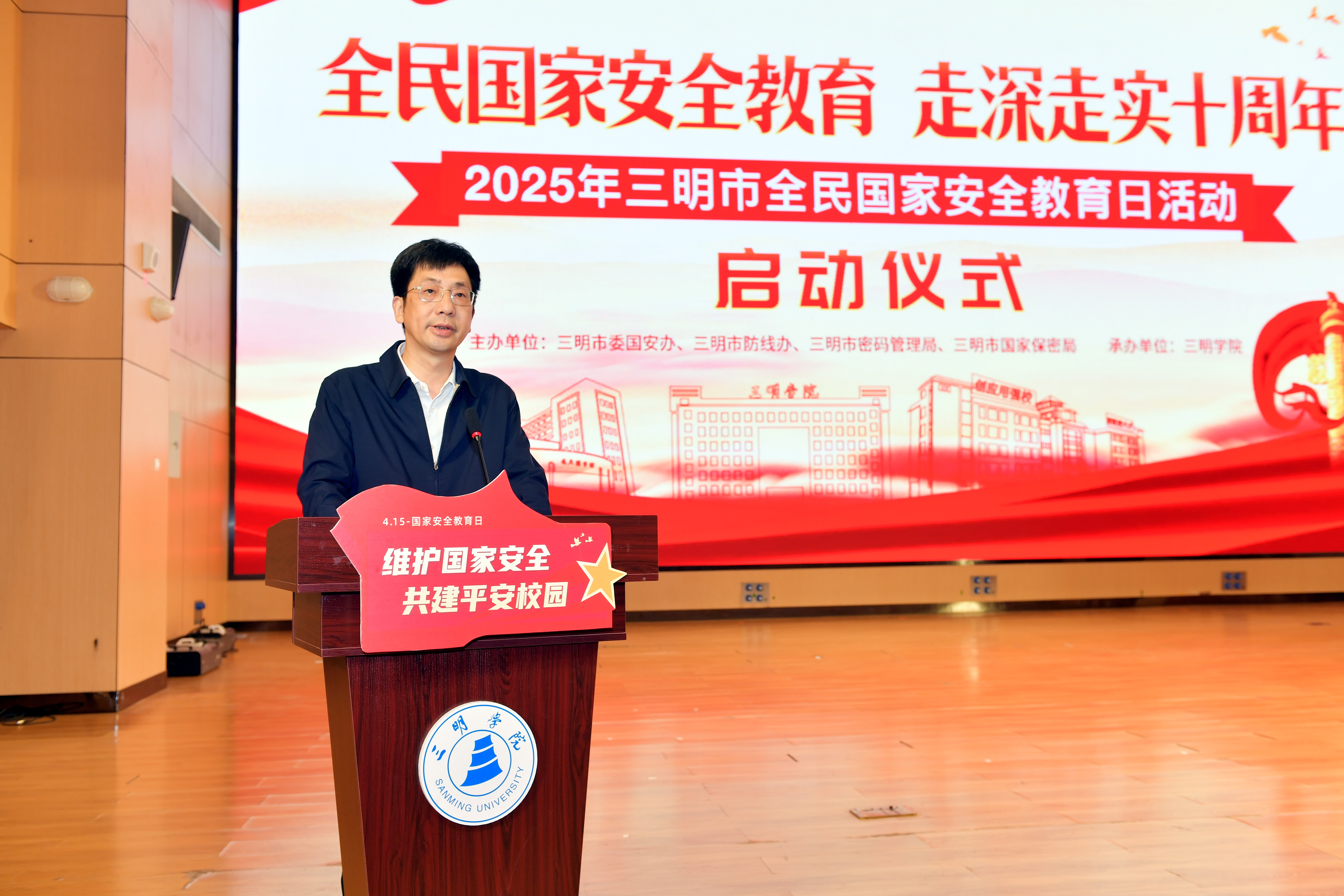 4月10日,在第十个全民国家安全教育日暨《中华人民共和国国家安全法》颁布十周年之际,以“全民国家安全教育 走深走实十周年”为主题的三明市2025年全民国家安全教育日主场活动在yl6809永利官网举办。市委常委、市委政法委书记郑隆松,yl6809永利官网党委书记陈列平,市委国安委成员单位、三所高校师生代表近400人参加。