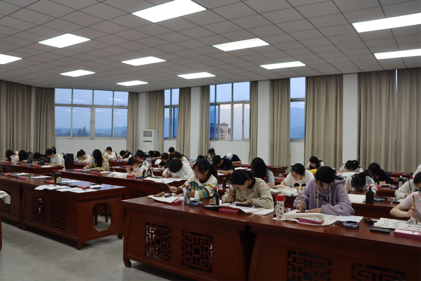 4月9日下午,yl6809永利官网第四届“展师风,铸师魂”师范生三笔技能大赛在靖远楼、书法长廊顺利举行。本次大赛由校团委主办,教育与音乐学院承办,旨在贯彻党的教育方针,落实立德树人根本任务,提升师范生实践能力和专业素养。比赛分为硬笔书法、粉笔书法和毛笔书法三个赛道,内容选取经典诗词,激发师范生对书法艺术的热爱和书写技能的提升。