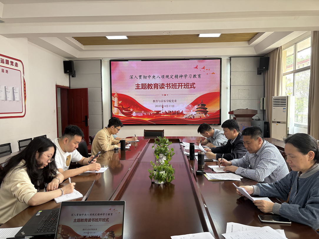 为深入贯彻落实中央八项规定精神,进一步强化党员干部的纪律意识和作风建设,推动学院高质量发展,教育与音乐学院于4月11日举办深入贯彻中央八项规定精神专题读书班开班式。