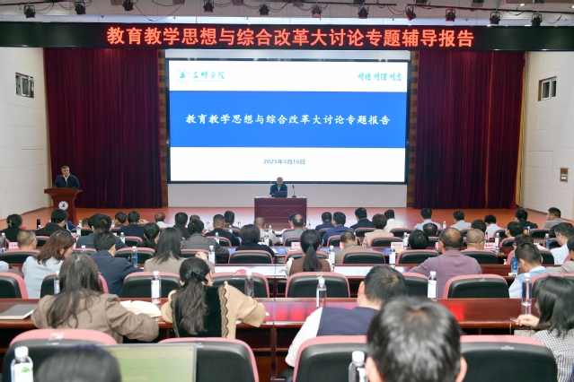 4月16日下午,yl6809永利官网在学校学术报告厅举办教育教学思想与综合改革大讨论首场专题辅导报告会,邀请中国高等教育学会学术发展咨询委员会副主任兼秘书长、中国教育科学研究院原副院长马陆亭研究员精彩开讲。全体校领导、处科级干部、学科专业带头人、系主任,教师代表等300余人参加。报告会由张君诚校长主持。