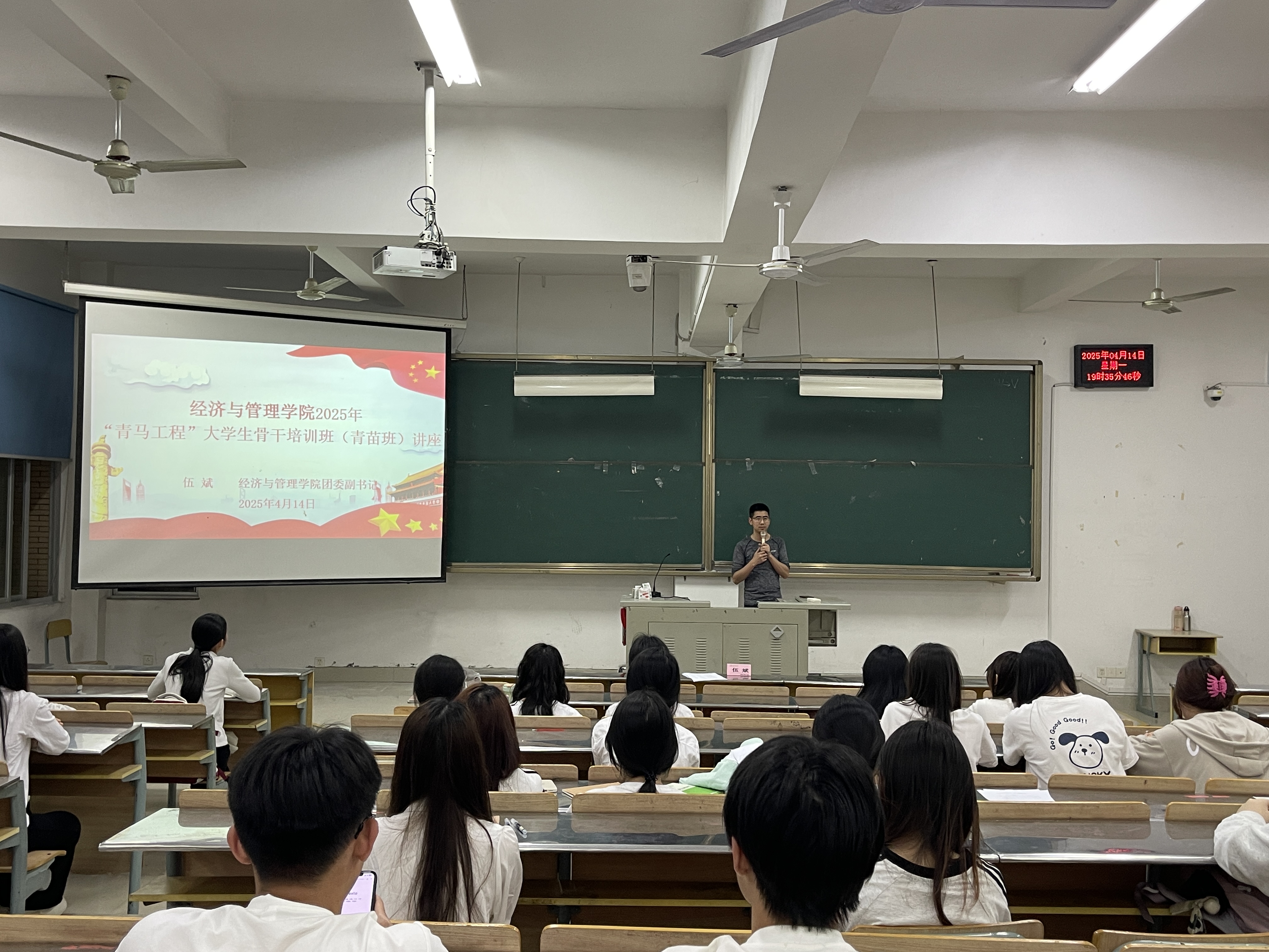 4月14日,经济与管理学院于厚德楼104教室举行2025年“青马工程”青苗班开班仪式,学院团委负责人及全体学员参加。