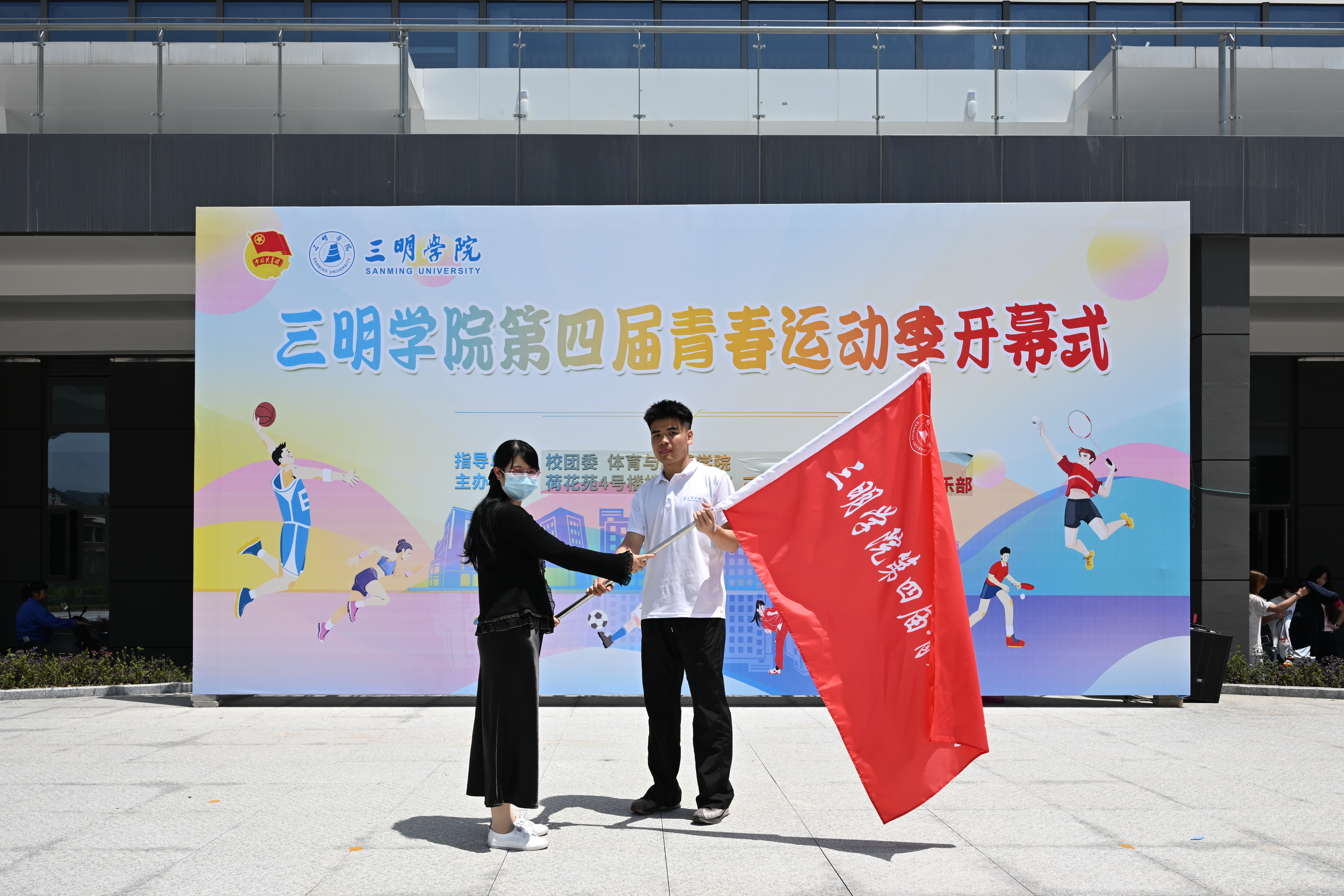 体育与康养学院党委书记为第四届青春运动季授旗,象征着运动精神的传承与开启。校团委书记宣布青春运动季开幕,与会领导放飞气球,正式开启了本届青春运动季。