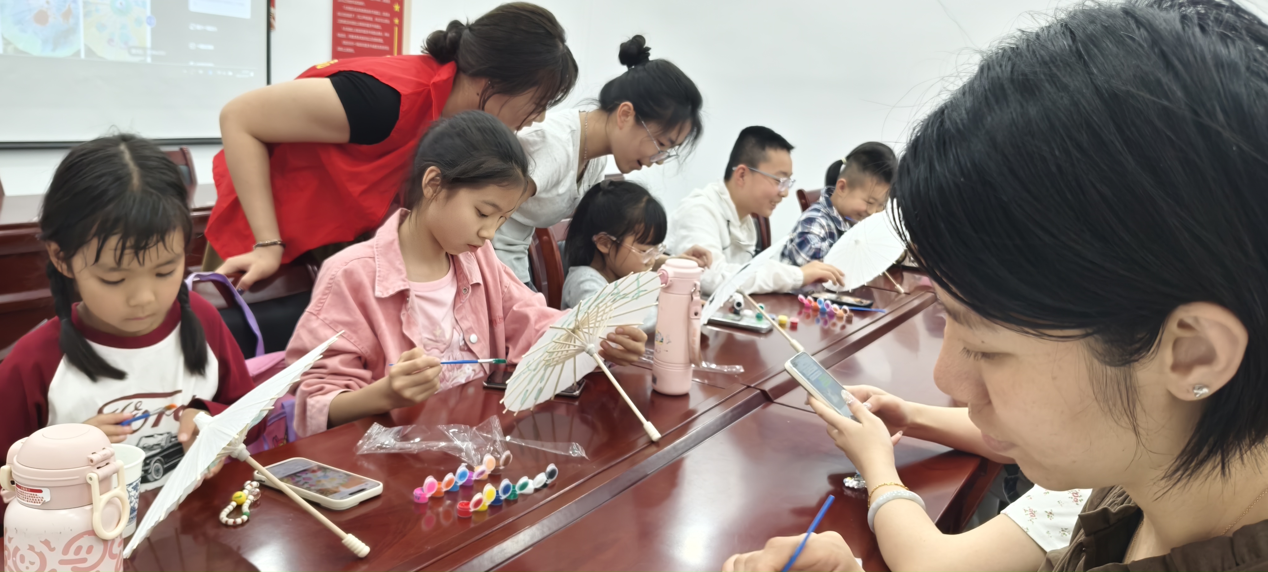 宣讲员通过生动的讲解与视频展示,向参与活动的青少年详细介绍了油纸伞的历史渊源、制作工艺和文化内涵。孩子们拿起画笔,在志愿者的指导下,在空白的油纸伞面上尽情挥洒创意。他们专注的神情、灵动的笔触,让一把把原本素白的油纸伞焕发出别样的生机与活力。
