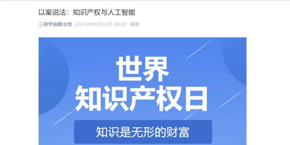 活动期间,校园内LED电子屏滚动播放“2025年全国知识产权宣传周主题‘知识产权与人工智能’”等主题标语。同时,学校图书馆官方微信公众号发布《以案说法:知识产权与人工智能》《知识产权宣传周—知识产权书目荐读》等系列推文,以图文等形式解读专利法保护案例。