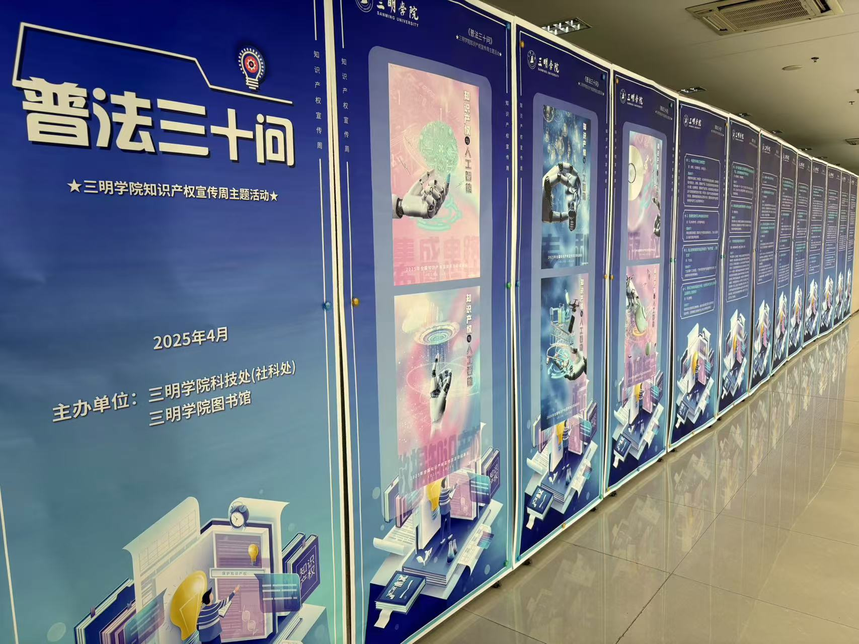 图书馆展出了“知识产权与创新发展”主题海报,吸引众多师生驻足学习。同步开展的“知识产权普法三十问”活动,以趣味图文等形式普及法律知识。